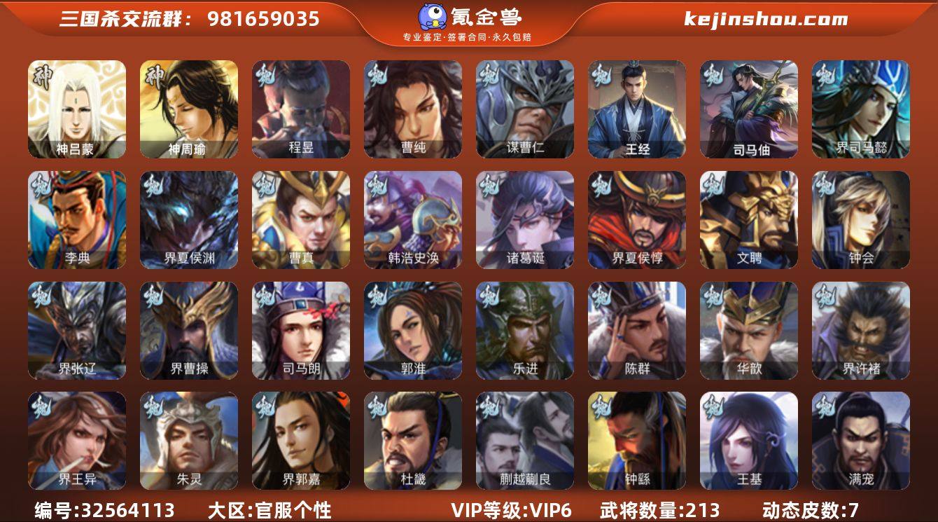【14789704】官阶:领军将军;VIP等级:VIP6;史诗武将数量:11;动态皮肤数量:7;武将总数:213;史诗宝珠数量:0;将魂数量:2529;神将:0;魏国史诗武将:2;蜀国史诗武将:3;吴国史诗武将:2;群史诗武将:3