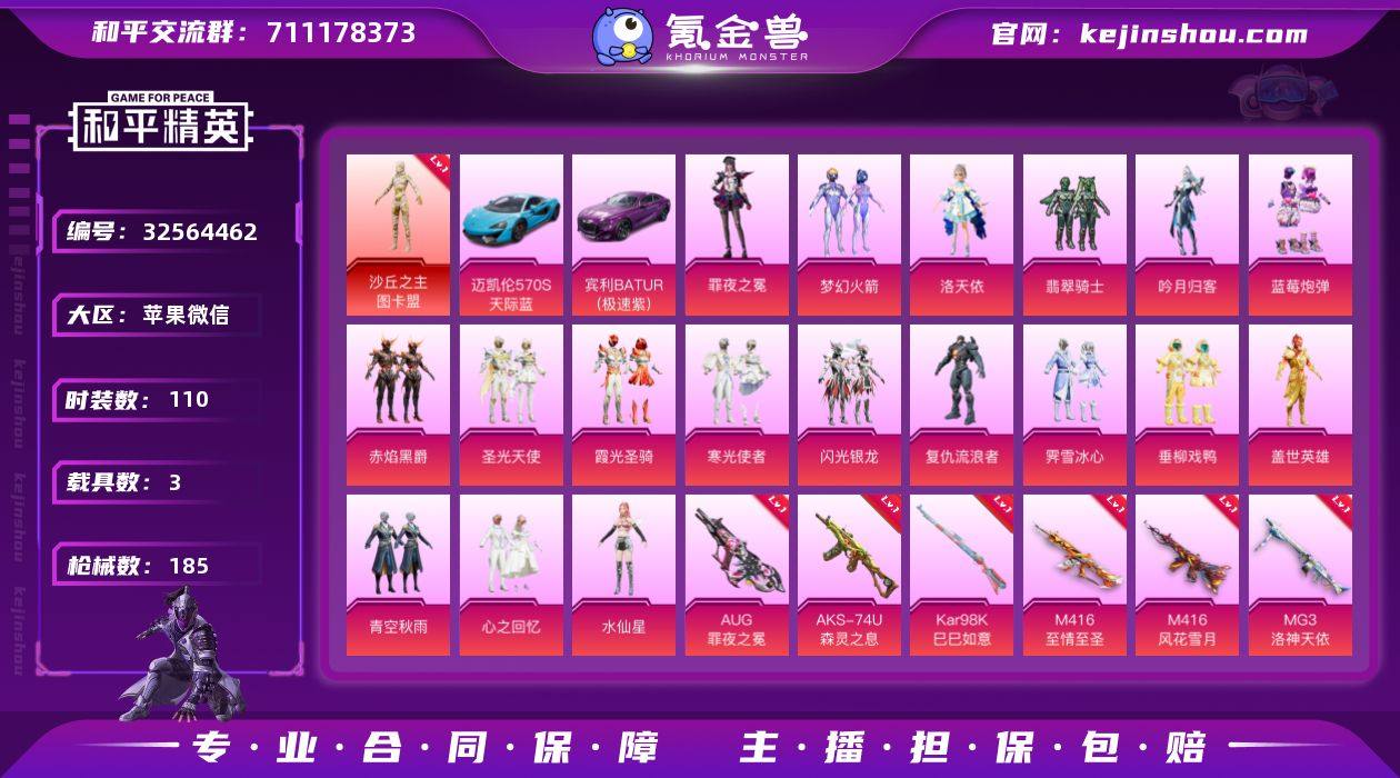 【图卡盟 8级M4至情至圣 M4超新星18粉装12特效枪3载具】 苹果V区-71183热力值-110套装-185枪皮 【1红装】 沙丘之主-图卡盟(1级)【3载具】 兰博轿车灰色 宾利BATTUR(极速紫) 迈凯伦570S(天际蓝)【18粉装】 梦幻火箭 洛天依 圣光天使 寒光使者 复仇流浪者 蓝莓炮弹 垂柳戏鸭 罪夜之冕 水仙星 霁雪冰心 霞光圣骑 赤焰黑爵 吟月归客 心之回忆 青空秋雨 盖世英雄 闪光银龙 翡翠骑士【12特效枪】 M416-超新星(1级) M416-至情至圣(8级) M416-风花雪月(1级) AKS-74U-森灵之息(5级) AUG-罪夜之冕(4级) Mk14-福马献瑞(5级) M416-天马神君(3级) SCAR-L-青春物语(4级) AKM-星际浪客(5级) M16A4-垂柳戏鸭(4级) MG3-洛神天依(2级) Kar98K-巳巳如意(5级)【119热门】 奇迹天团 破蛋小黄鸡 英勇保护者 暗夜契约 团圆交子 瑞龙福将 豚鼠丹丹 M416-仓鼠灰灰 M762-风花雪月 SS6特训 SS27特训 SS26特训 SS24特训 SS23特训 SS22特训 Mk47-洛神天依 Mk14-山经魅狐 Mini14-梦幻火箭 M24-百合蜜语 AKM-环太平洋 SCAR-L-玉兔迎春 GROZA-田园牧歌 M762-天降萌叽 Mk47-乌木金纹 UZI-娇憨猪猪 S12K-垂柳戏鸭 MG3-幻世战舞者 AKM-虎虎生威 AKM-星之彼岸 青龙圣者 GROZA-异彩先驱 GROZA-春暖花开 AUG-圣光天...