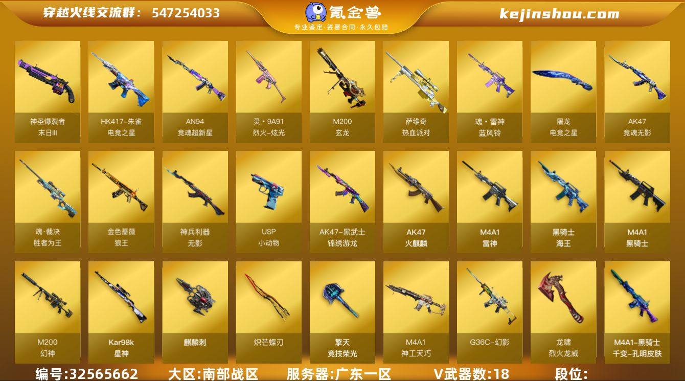 号主精心打造的成品号有幻神,星神,雷神,雷神皮肤蓝风铃,幻影g36c,炽芒蝶刃蝴蝶刀,m4神工天巧,无影神兵利器,火麒麟枪娘皮肤