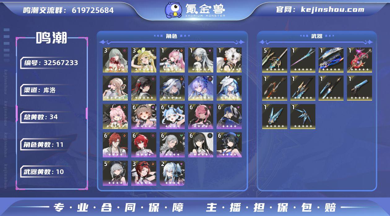 账号80级,可全信息换绑 UP角色+武器:3+1弗洛洛,1+1爱弥斯,0+1嘉贝丽娜,00坎特蕾拉,00千咲,00守岸人,00琳奈,一把赫奕流明. 老常驻武器都有,up角色声骸全都养成完美毕业,都能进声骸榜前100