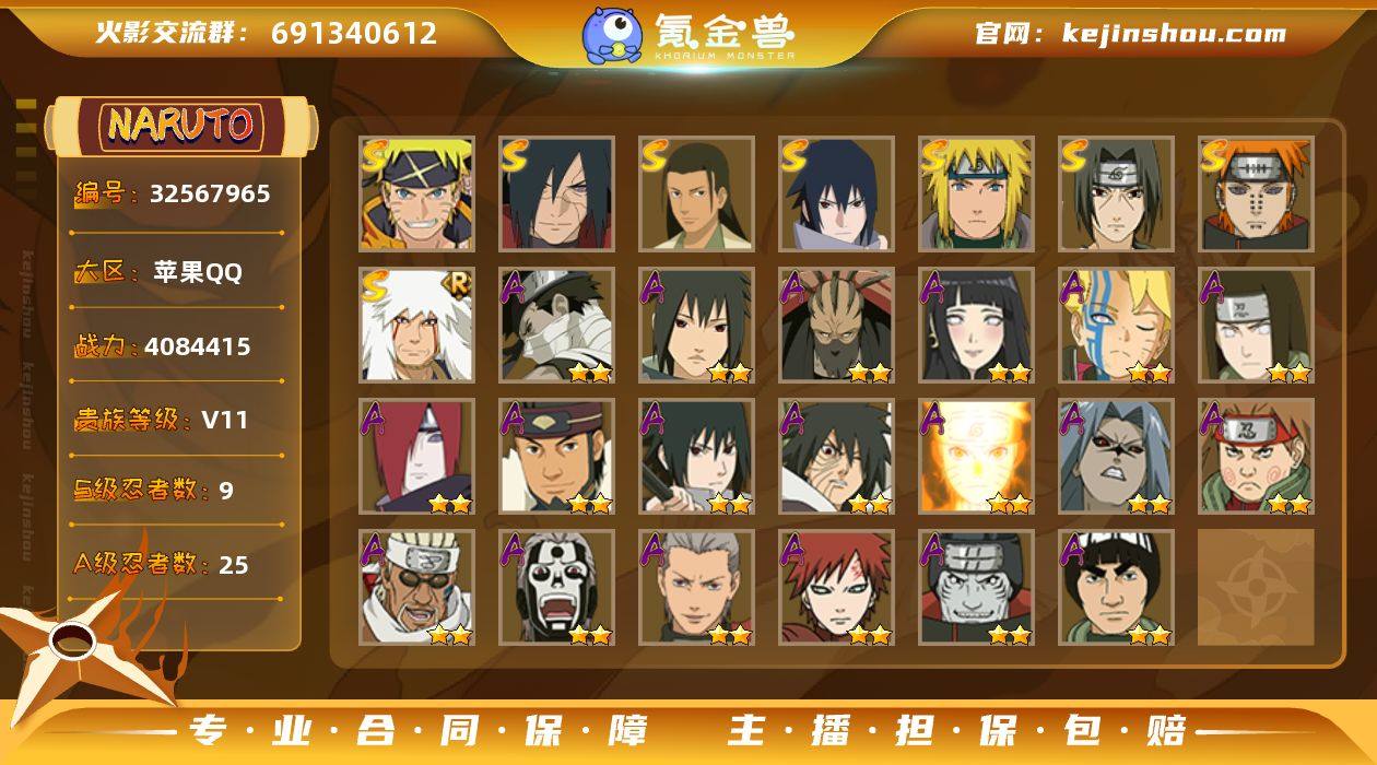 DHY772苹果Q9s【区服】745【等级】135【S级数量】9【A级数量】25 【S级】千手柱间「木叶创立」 佩恩「天道」 宇智波佐助「永恒万花筒」 宇智波斑「秽土转生·解」 宇智波鼬「须佐能乎」 宇智波带土「十尾人柱力」 波风水门 漩涡鸣人·宇智波佐助 自来也「舞之豪杰」 【A级】宇智波鼬 我爱罗「疾风传」 漩涡鸣人「九尾查克拉」 日向宁次「忍界大战」 宇智波佐助「疾风传咒印」 桃地再不斩 干柿鬼鲛 猿飞阿斯玛 宇智波泉奈 飞段 奇拉比 飞段「死司凭血」 波风水门「青年」 宇智波带土「暴怒」 日向雏田「最终章」 蝎 秋道丁次「忍界大战」 漩涡博人「桃式显现」 长门「青年」 迈特凯 小南「神驹佑将」 宇智波佐助「须佐能乎」 巳月「仙人模式」 迈特凯「青春爆炸」 达鲁伊 【B级】佩恩「畜生道」 君麻吕 日向花火「武当宗师」 佩恩「地狱道」 春野樱「忍者少女」 天天「峨眉宗师」 木叶丸「疾风传」 御手洗红豆 春野樱「疾风传」 我爱罗 御手洗红豆「新春限定」 惠比寿 李洛克「疾风传」 山中井野「疾风传」 枫「新佩恩六道」 野原琳「漂泊浪客」 大和 天天「疾风传」 卯月夕颜 勘九郎「疾风传」 君麻吕「咒印」 黑土 秋道丁次「疾风传」 贰「火之意志继承者」 宇智波佐助「疾风传...