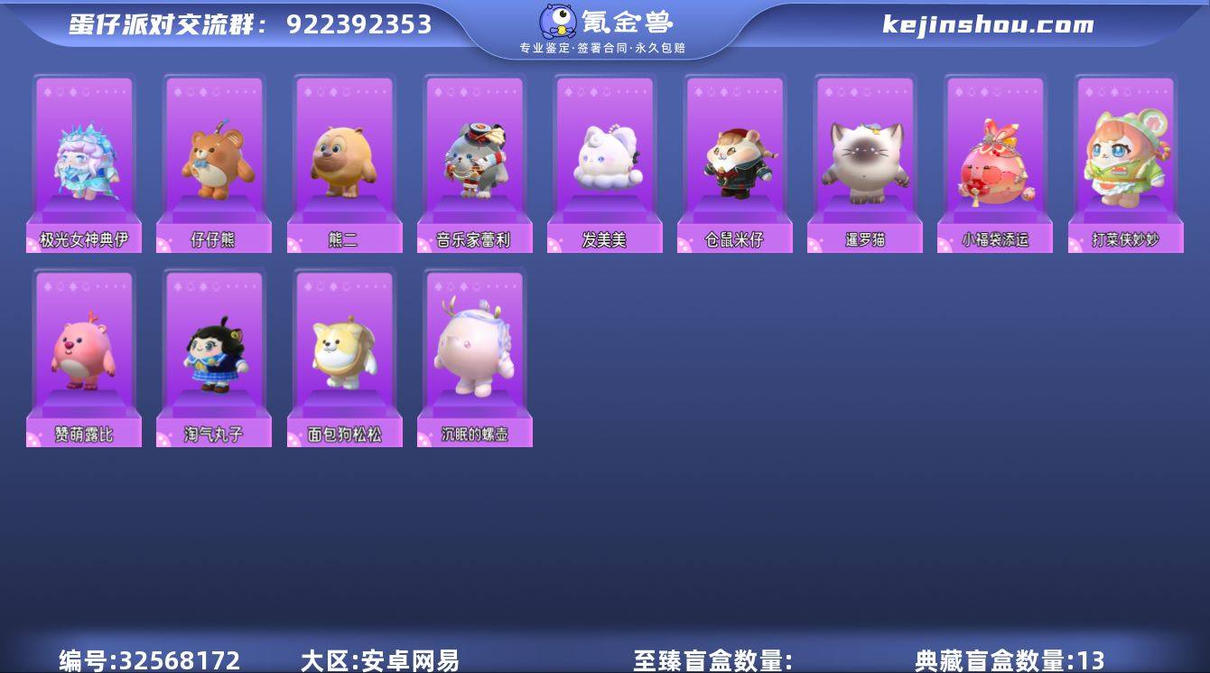 【绝版联动皮熊二赞萌露比13典藏1至臻配饰热门皮肤极光女神典伊发美美仔仔熊小福袋添运至臻配饰鲨都有联动皮二师兄猪八戒可爱配饰赞萌露比眼镜赞萌露比零钱包赞萌露比帽子可爱动作表情多萌萌小号】账号类型: 手机账号 段位: 三阶鸡蛋 热门装扮: 仔仔熊,淘气丸子,仓鼠米仔,极光女神典伊,熊二,音乐家蕾利,发美美,赞萌露比,面包狗松松,沉眠的螺壶,打菜侠妙妙,小福袋添运,暹罗猫二师兄音浪星梦
