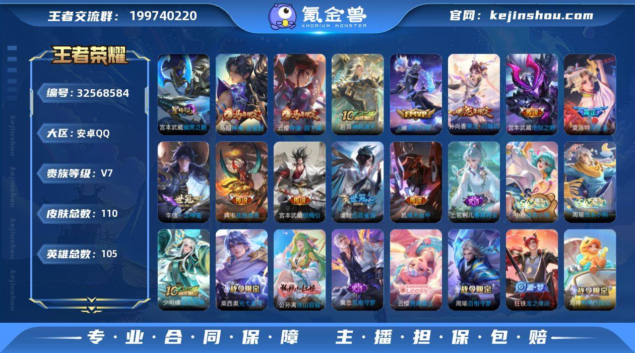 本账号仅出售王者荣耀永久使用权,个人不想玩了诚心出,皮肤一共100多个,英雄齐全,贵族V7,上过荣耀段位。 核心皮肤:宫本武藏传说+星传说、马超传说、云缨传说等多款热门传说皮肤,账号质量高,买来直接畅玩。 全程平台担保交易,安全放心,非诚勿扰。