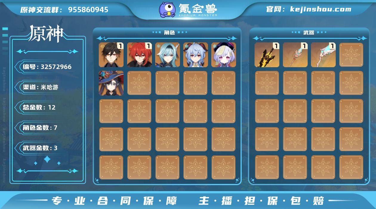 【YSYT1062】55级/12黄/女主/7个五星角色/3个五星武器/一命迪卢克/一命钟离/甘雨/七七/优菈/莫娜/埃洛伊/天空之翼/天空之脊/无工之剑