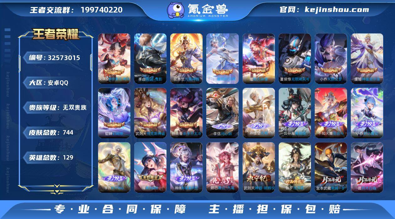 ky无双v10!金标孙尚香,金标敖隐!可认证安卓(q)区744皮14典藏10无双10珍品传说135传说18星.亮点:4天幕 71按键 168浓情玫瑰 963亲密玫瑰 1371点卷 背包还有2颗荣耀水晶未兑换 无双贵族4.17日到期
