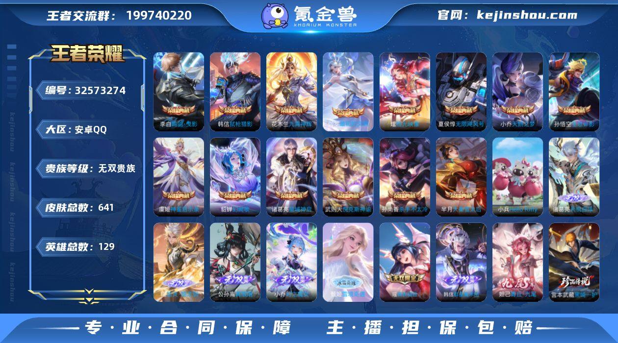 C-DC3188 安卓QQ 无双V10 641皮 15典藏8无双8珍品传说6星元 106传说271限定6.4W流光积分 Kitty小兵 52按键3天幕 发育路56段 中路40段 1W战力金标莱西奥后羿马可波罗 金标武则天 223幸运值 3610皮肤碎片 4061英雄碎片 20改名卡 22印记 6荣耀印记 营地号:217118447【珍品传说】怪盗基德,孙策时之奇旅,器灵·落星盏,兔狲·蓬尾,黑崎一护,朽木白哉,酷洛米之心,大耳狗之梦, 【无 双】韩信群星魔术团,真我赫兹瑶,时之魔女,青丘·九尾,离恨烟,甄姬雪境奇遇,器灵·螭龙剑,天机白泽, 【荣耀典藏】九霄神辉,全息碎影,鸣剑·曳影,星域神启,武则天,倪克斯神谕,天鹅之梦,无限飓风号,杀手不太冷,大秦宣太后,幻阙歌,弑枪猎影,神鉴启示录,拾光映像,最初的交响, 【星元皮肤】金色仲夏夜,幽冥之眼,幽冥火,未来机甲,星际治安官,玉鸾吟, 【热门限定】愿照·众生和,神骥·逐星野,神骥·聚万邦,千劫归真,愿照·岁时盈,愿照·千秋盛,愿照·山河定,愿照·九州拓,愿照·福禄聚,器灵·浮梦炉,逐花归海,落雪白狼,凤求凰,至尊宝,乘龙·问璇玑,乘龙·淬吴钩,乘龙·铭钟鼎,乘龙·聚宝船,乘龙·忆丹青,白虎志,青龙志,朱雀志,瑞麟志,玄武志,神威,龙胆,烈魂,武圣,李逍遥,冰锋战神,千劫归真,天魔缭乱,白鹤梁神女,曦玄引男,影龙天霄,...
