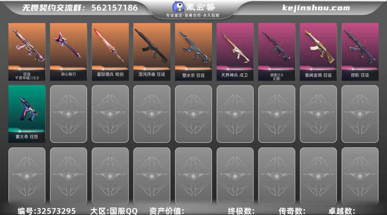 QQ全区QQ全服,已用无畏点数:16990,已用源晶点:545,解锁英雄:18,营地ID:0,实名情况:可二次实名,等级:77 ,账号类型:QQ账号,皮肤价值:16990,段位:未定级, 【英雄】禁灭,捷风,雷兹,幽影,炼狱,不死鸟,贤者,猎枭,芮娜,夜露,K/O,尚勃勒,霓虹,黑梦,盖可,壹决,暮蝶,钛狐, 【套装】曲奇套装 礼包,FRGMT x 皮蛋 礼包,出双入对,捣蛋鬼 礼包,危化小分队 礼包,孵化小能手:破壳鸭系列 礼包,超兽队:珍藏 礼包,超兽队 礼包, 【步枪 獠犬】獠犬-诛心猎手, 【佩枪 短炮】短炮-甜心猎手, 【近战武器】近战武器-流风回雪,近战武器-生物分子解离器,近战武器-碎心裂刃,近战武器-星际猎兵短剑, 【佩枪 狂怒】狂怒-光环序列,狂怒-蒙太奇, 【佩枪 鬼魅】鬼魅-幻心猎手,鬼魅-瑰梦艺语, 【佩枪 正义】正义-诛心猎手, 【佩枪 标配】标配-阿特拉斯指挥部,标配-星际猎兵, 【冲锋枪 蜂刺】蜂刺-甜心猎手, 【冲锋枪 骇灵】骇灵-无限竞技,骇灵-瑰梦艺语, 【霰弹枪 雄鹿】雄鹿-瑰梦艺语, 【霰弹枪 判官】判官-星际猎兵, 【步枪 戍卫】戍卫-甜心猎手,戍卫-光环序列,戍卫-天界神兵,戍卫-天界神兵, 【步枪 幻影】幻影-掠影//2.0,幻影-星际猎兵,幻影-...