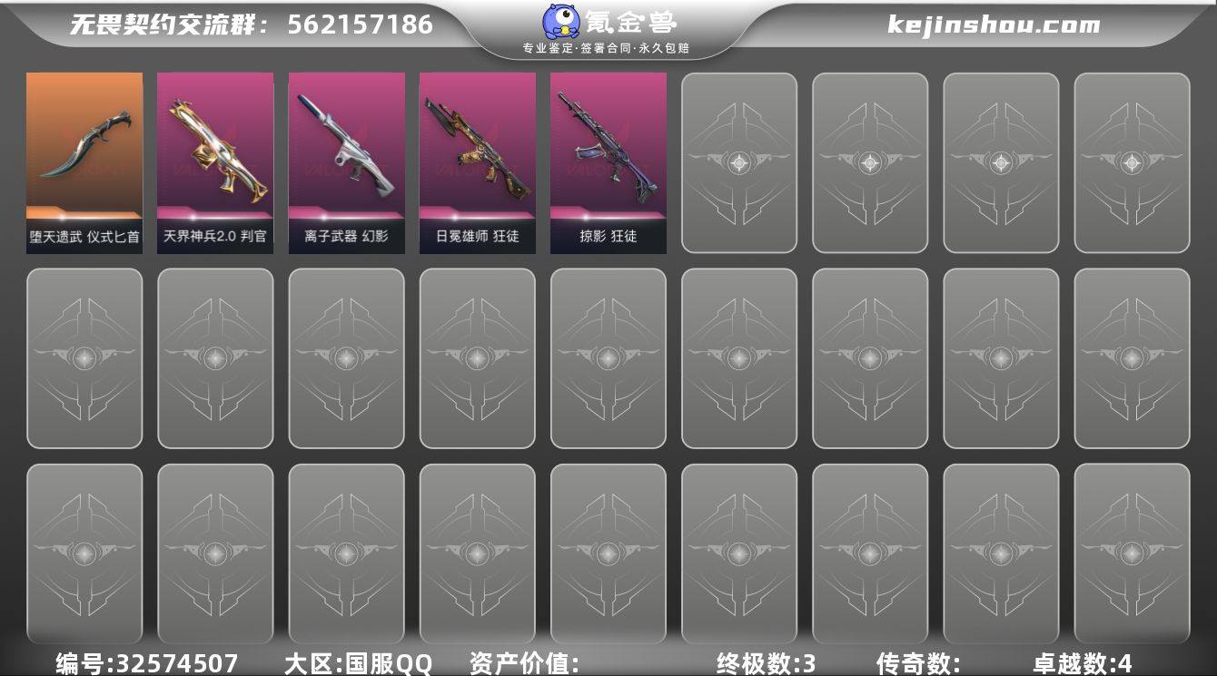 【英雄】:炼狱,壹决,捷风,幽影,不死鸟,贤者,猎枭,零,奇乐,尚勃勒,霓虹,夜露 【近战武器】:近战武器-堕天遗武 仪式匕首 【狂徒】:狂徒-掠影,狂徒-日冕雄师 【幻影】:幻影-离子武器 【判官】:判官-天界神兵//2.0 【卡面】:树懒大作战 卡面,无畏契约GO!第一卷:芮娜 卡面,无畏契约GO!第一卷:零 卡面,《双城之战》金克丝 卡面,代号红色 卡面,新兵报到 卡面,V契约 卡面,无畏契约 卡面 【喷漆】:霓光四射 喷漆,买装还是存钱 喷漆,关门放狗 喷漆,红鳞 喷漆,松叶 喷漆,无畏契约GO!第一卷:奇乐 喷漆,放下武器 喷漆,胜利属于无畏契约 喷漆,GLHF 喷漆,无畏契约 喷漆 【挂饰】:无畏契约GO!第一卷 零 挂饰,天外飞客 挂饰,无畏契约 纪念币 挂饰