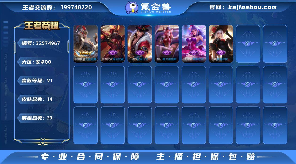JJ4310:安卓Q-V0-永恒钻石V-33英雄-14皮肤-0典藏-0无双-0珍品传说-1传说-5史诗 【稀有英雄】 夏洛特 【传说皮肤】 久胜战神 【史诗皮肤】 鬼剑武藏 魅力维加斯 偶像歌手 玫瑰异探 圣诞狂欢 【勇者皮肤】 大发明家 阿尔法小队 死亡骑士 玩偶对对碰 【其他皮肤】 归虚梦演 天启骑士