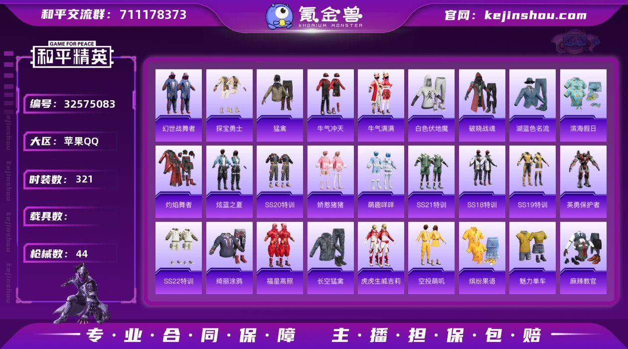 "HX9321【游戏等级52-地铁天赋已开-4王牌印记-素材号】苹果 手Q-0粉装-0特效枪-0载具-0粉色飞行器-11223热力值-4王牌印记-33套装-44枪皮 【粉色降落伞】:环太平洋降落伞,垂柳戏鸭降落伞 【稀有枪皮】:AKM-灼热熔岩,AKM-生命誓言,AKM-虎虎生威,M16A4-幻世战舞者,SCAR-L-炫彩节奏,SCAR-L-玉兔迎春,SCAR-L-红色方程式,M416-绯红前夜,M416-蓝色火焰,AUG-耀粉歌者,QBZ-彩虹符号,AC-VAL-天降萌叽,蜜獾-娇憨猪猪,UZI-娇憨猪猪,UZI-红色方程式,UMP45-蓝色火焰,Vector-生命誓言,汤姆逊-炫彩节奏,汤姆逊-环太平洋,汤姆逊-耀粉歌者,P90-飞驰魅影,AWM-垂柳戏鸭,SLR-娇憨猪猪,M417-绒雪飘舞,S686-生命誓言,S686-红色方程式,S1897-炫彩节奏,S12K-破晓战魂,S12K-娇憨猪猪,S12K-幻世战舞者,MG3-幻世战舞者 【其他套装】:套装-SS16特训,套装-SS17特训,套装-SS18特训,套装-SS19特训,套装-SS20特训,套装-SS21特训,套装-SS22特训,套装-幻世战舞者,套装-探宝勇士,套装-湖蓝色名流,套装-滨海假日,套装-灼焰舞者,套装-炫蓝之夏,套装-牛气冲天,套装-牛气满满,套装-猛禽,套装-白色伏地魔,套装-破晓战魂,套装-福星高照,套装-空投萌叽,套装-竞技名...