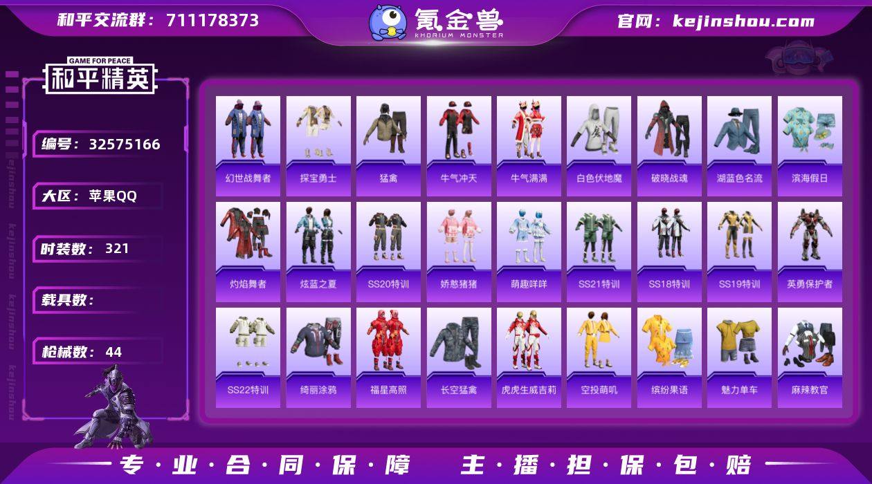等级52-地铁天赋已开-4王牌印记-素材号】苹果 手Q-0粉装-0特效枪-0载具-0粉色飞行器-11223热力值-4王牌印记-33套装-44枪皮 【粉色降落伞】:环太平洋降落伞,垂柳戏鸭降落伞 【稀有枪皮】:AKM-灼热熔岩,AKM-生命誓言,AKM-虎虎生威,M16A4-幻世战舞者,SCAR-L-炫彩节奏,SCAR-L-玉兔迎春,SCAR-L-红色方程式,M416-绯红前夜,M416-蓝色火焰,AUG-耀粉歌者,QBZ-彩虹符号,AC-VAL-天降萌叽,蜜獾-娇憨猪猪,UZI-娇憨猪猪,UZI-红色方程式,UMP45-蓝色火焰,Vector-生命誓言,汤姆逊-炫彩节奏,汤姆逊-环太平洋,汤姆逊-耀粉歌者,P90-飞驰魅影,AWM-垂柳戏鸭,SLR-娇憨猪猪,M417-绒雪飘舞,S686-生命誓言,S686-红色方程式,S1897-炫彩节奏,S12K-破晓战魂,S12K-娇憨猪猪,S12K-幻世战舞者,MG3-幻世战舞者 【其他套装】:套装-SS16特训,套装-SS17特训,套装-SS18特训,套装-SS19特训,套装-SS20特训,套装-SS21特训,套装-SS22特训,套装-幻世战舞者,套装-探宝勇士,套装-湖蓝色名流,套装-滨海假日,套装-灼焰舞者,套装-炫蓝之夏,套装-牛气冲天,套装-牛气满满,套装-猛禽,套装-白色伏地魔,套装-破晓战魂,套装-福星高照,套装-空投萌叽,套装-竞技名士,套装-绮丽...