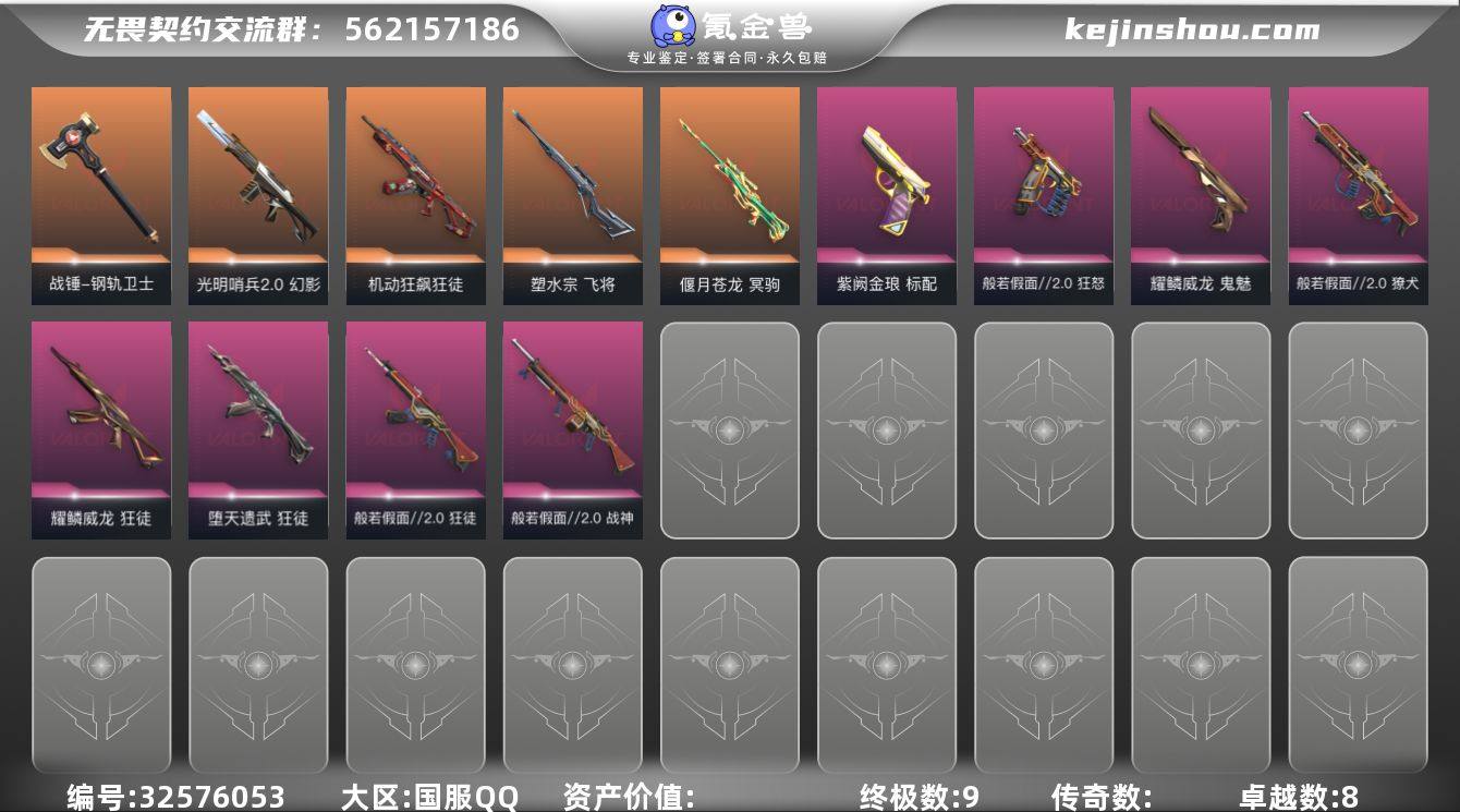 L2867【精品号】鬼丸国纲 班若2.0套装 塑水飞将 紫金爪刀 堕天狂徒 钢轨战锤 光明幻影 紫金标配 威龙之刃 耀鳞狂徒 耀鳞鬼魅 偃月冥驹 机动狂徒 魄月玄刃 库存: 28900剩余VP:29剩余R点:45 段位:白银1