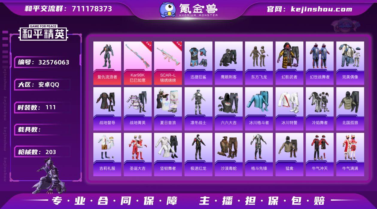 HM6725安卓Q区-素材号【可二次 双字ID 2粉装-3特效枪 地铁己开 小丑鱼 东方飞龙 SCAR-L-锦绣绵绵[5级] 角色-绯穹魔姬 角色-夜瞳黯灵 灵猫魔法师飞行器】2粉装-3特效枪-58306热力值-4王牌印记-156套装-203枪皮【优质套装】: 绯穹魔姬 复仇流浪者【特效枪等级】:Kar98K-巳巳如意(五级- Kar98K-巳巳如意)SCAR-L-锦绣绵绵(五级- SCAR-L-锦绣绵绵)【优质武器皮肤】: Kar98K-巳巳如意 SCAR-L-锦绣绵绵【稀有武器皮肤】: QBZ-纯真浪花 AWM-纯真浪花 汤姆逊-纯真浪花 DBS-乌木金纹 AA12-G-纯真浪花 平底锅-纯真浪花 SCAR-L-海盐豹豹 Kar98K-巳巳如意 SCAR-L-锦绣绵绵 M416-魔法学院 M416-红色方程式 M416-神秘黑猫 M416-蓝色火焰 M416-夜灯 M416-绯红前夜 AKM-夜灯 AKM-四圣焕新 AKM-生命誓言 AKM-乌木金纹 AKM-缤纷海域 AKM-破晓战魂 AKM-龙的传人 AKM-灼热熔岩 AKM-萌趣颜团子 AKM-霓虹街区 SCAR-L-红色方程式 SCAR-L-乌木金纹 SCAR-L-夜灯 SCAR-L-炫彩节奏 M16A4-机械英豪 M16A4-红色方程式 M16A4-蓝色火焰 M16A4-幻世战舞者 M16A4-夜灯 GROZA-绯红回忆 GROZA-乌木金纹 GROZA-影袭 GROZA-田园牧歌 GROZA-彩虹符号 GROZA-治愈之星 AUG-乌木金纹 AUG-耀粉歌者 AUG-凝视深渊 AUG-...