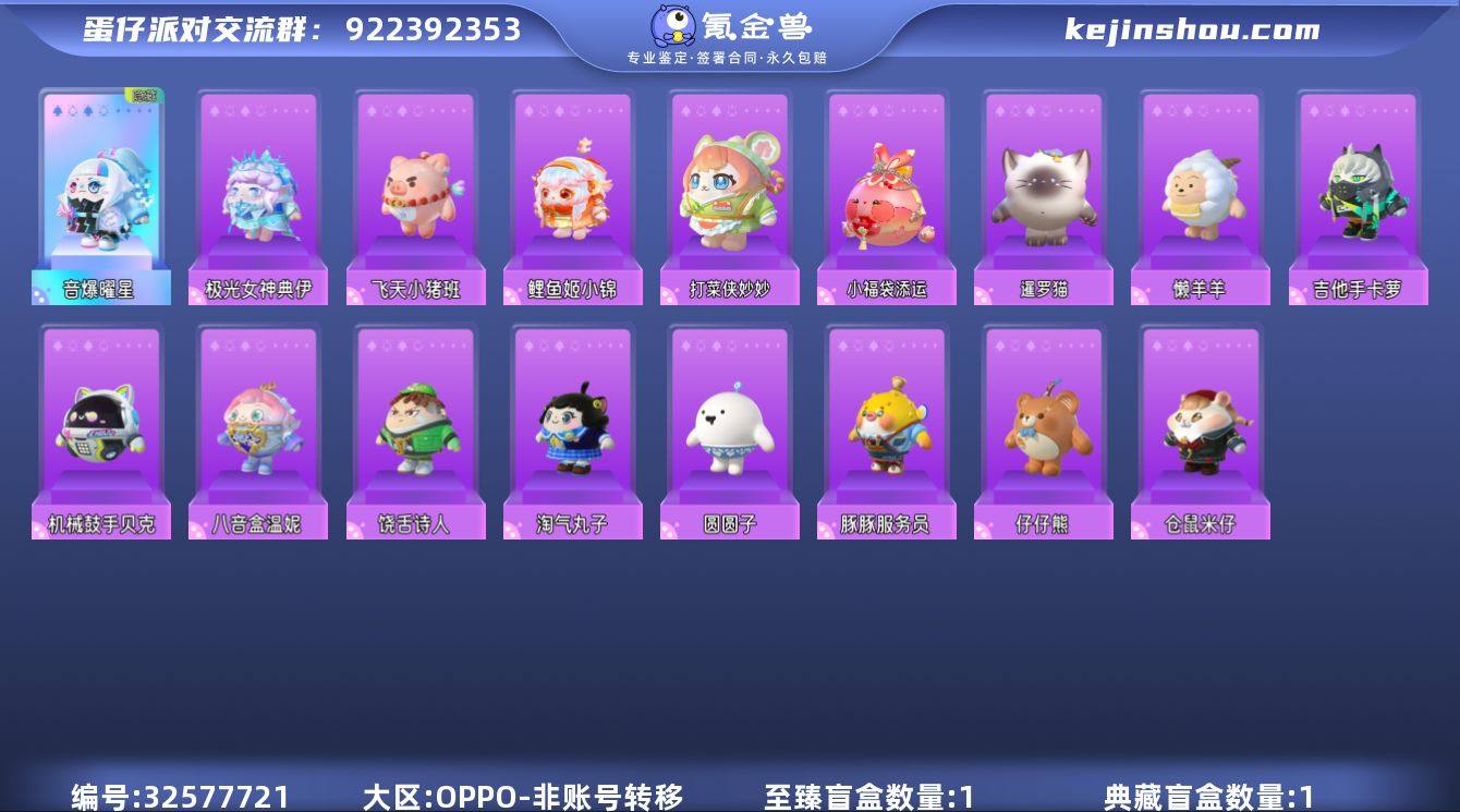 1彩16紫音爆曜星极光女神典豚豚服务员鲤鱼姬小锦八音盒温妮仓鼠米仔 历史潮流:2.6万 段位:三阶鸡蛋 等级:33 性别:男 幻彩套装数量:1 紫色套装数量:16 幻彩套装:音爆曜星 紫色套装:打菜侠妙妙 飞天小猪班尼 暹罗猫 小福袋添运 极光女神典伊 豚豚服务员 鲤鱼姬小锦 八音盒温妮 仓鼠米仔 机械鼓手贝克 吉他手卡萝 懒羊羊 仔仔熊 圆圆子 淘气丸子 饶舌诗人 背饰:电极蝴蝶结 "