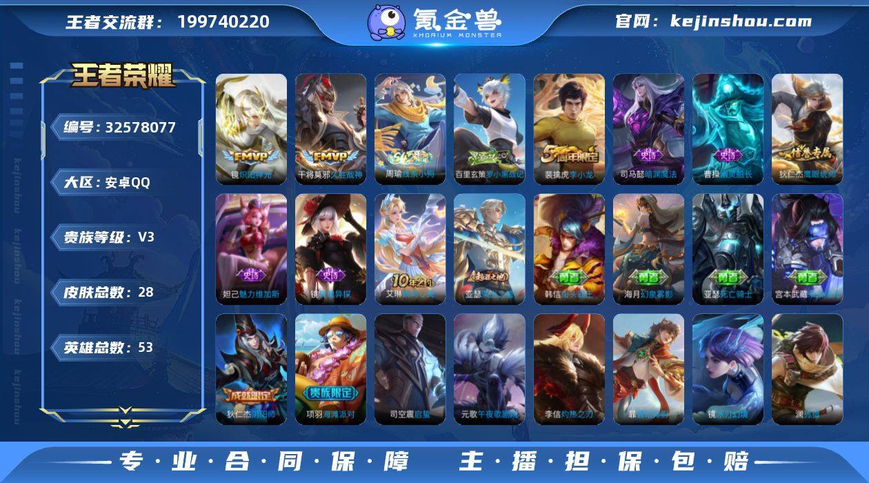野王小号 有多个英雄8500 评分高,胜率高。 本赛季荣耀王者 上赛季传奇王者 巅峰1700分