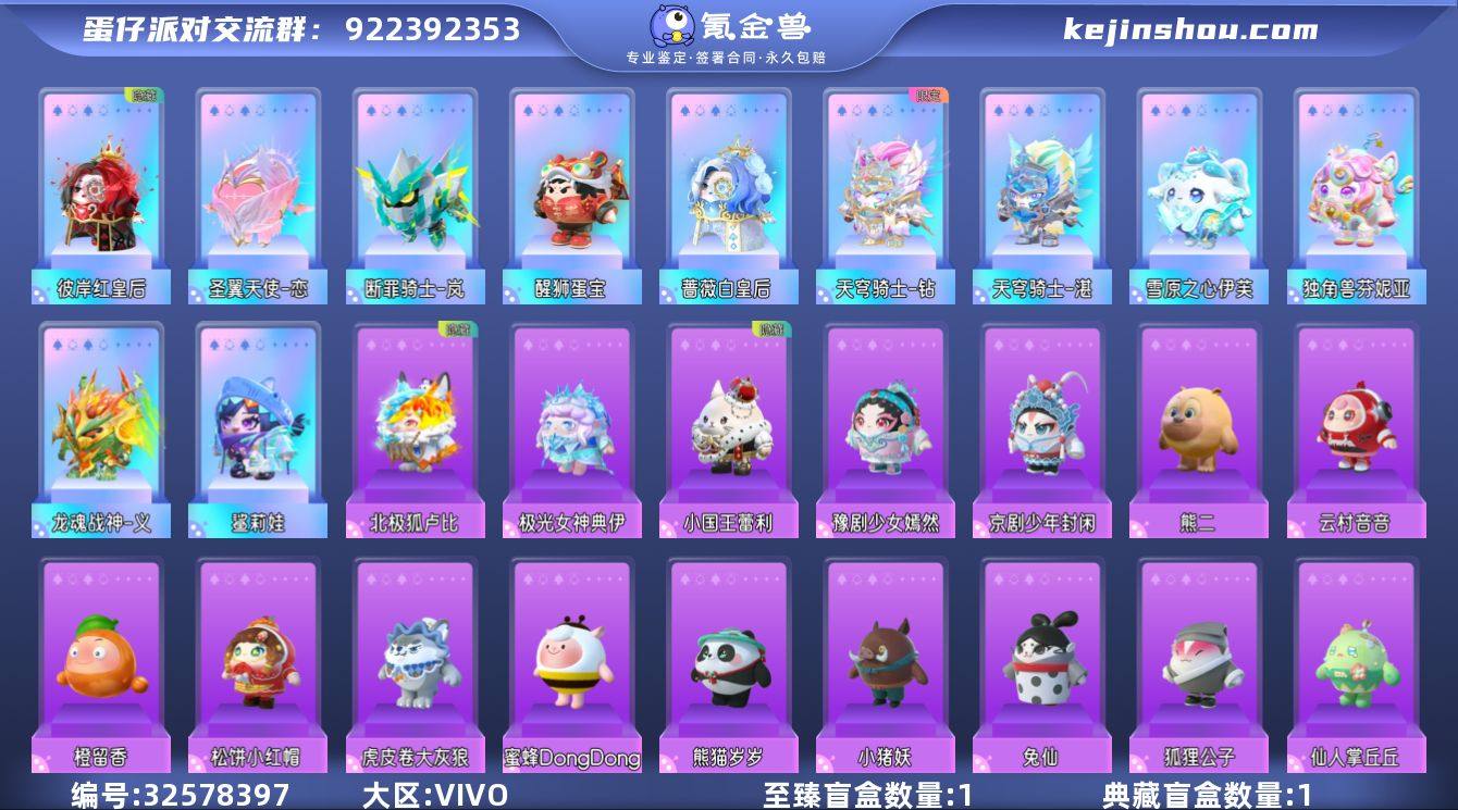13彩67紫天穹骑士钻圣翼天使澄鲨莉娃龙魂战神义独角兽芬妮亚雪原之心伊芙天穹骑士湛圣翼天使恋 历史潮流:9.3万 段位:三阶鸡蛋 等级:55 性别:男 幻彩套装数量:13 紫色套装数量:67 幻彩套装:天穹骑士钻 圣翼天使澄 鲨莉娃 龙魂战神义 独角兽芬妮亚 雪原之心伊芙 天穹骑士湛 圣翼天使恋 彼岸红皇后 蔷薇白皇后 断罪骑士岚 醒狮蛋宝 紫色套装:豫剧少女嫣然 京剧少年封闲 发美美 莓莓甜心兔 神兽嘲风 飞天小猪班尼 企鹅心心 小福袋添运 元气丸子 道具师芙芙 王子蒙斯特 郁金香贝尔 袋鼠嘟宝 天狗刑云 仓鼠米仔 貔貅福福 涂山浅浅 苹果派雪雪 梅海海 松山山 铃兰三月兔 嗷嗷 胡桃可露丽 饶舌诗人 石心船长苏勒 杰瑞 猴吼吼 鲤鱼姬小锦 御狸奴 熊二 赞萌露比 小国王蕾利 音乐家蕾利 大耳狗 幻想毛怪 极光女神典伊 北极狐卢比 雪怪瓦图鲁 北极兔卢米 梨花诗 骨精灵 小太阳葵葵 猪猪侠 沸羊羊 美羊羊 小灰灰 洗澡DUCKOO 刺猬绷绷 神月将军夜魄 熊猫岁岁 狐狸公子 兔仙 小猪妖 仙人掌丘丘 蜜蜂Dong...