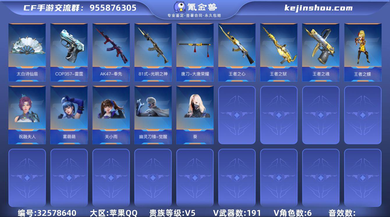 184英雄武器数 奉先+COP安其拉+COP雷霆便宜处理。SS3181 【王者系列】:王者之心,王者之蝶,王者之狱,王者之魂,王者之霆 【热门武器】:81式-光明之神,AK47-奉先,COP 357-雷霆,81式-阿波罗,COP 357-安琪拉 【角色】:葵,幽灵刀锋-觉醒,关小雨*2,雾萌萌,零-水下丽影,祝融夫人 【英雄武器】:龙鳞-觉醒,太白诗仙扇,唐刀-大唐荣耀
