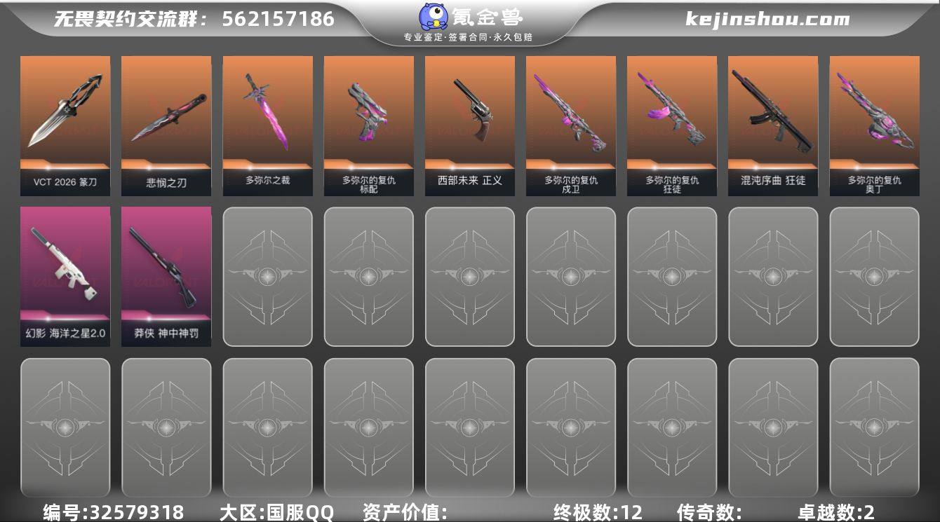 L2875【精品号】vct篆刀 镭切 海洋幻影 神中莽侠 蒙太奇战斧 西部正义 无畏怜悯 混沌狂徒 碎心裂刃 多弥套装 库存: 26640剩余VP:1剩余R点:0 段位:铂金1