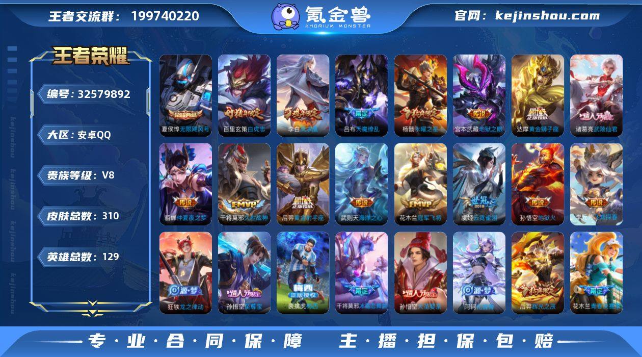 [17838100]V8 1典藏 20传说 129英雄 310皮肤 典藏英雄武则天 可修改实名 男号 【英雄全皮】苏烈全皮,敖隐全皮,孙权全皮,蚩奼全皮,大禹全皮 【稀有英雄】敖隐(小龙人),大司命,嬴政(始皇帝),韩信(韩跳跳),夏洛特(夏师傅),艾琳,橘右京(橘子),娜可露露(鸟人),不知火舞,赵云,金蝉(唐僧),戈娅 【荣耀水晶】无限飓风号(高达) 【传说皮】神树通天,黄金狮子座,黄金射手座,地狱火,仲夏夜之梦(大飞蛾),海洋之心,地狱之眼,末日机甲-孙尚香(绿蚂蚱),云霓雀翎,冠军飞将,久胜战神,飞鸢探春,超时空战士-狄仁杰 【珍宝阁皮】优雅恋人,蔷薇恋人 【赛季/战令皮】噬灭天穹(s37),古海寻踪(s33),海盐诗旅(s30),擒涛扼浪(s31),探海日志(s32),顽趣-梦奇,剑破天穹(s35),天穹祈灯(s34),天穹之誓(s36),凯尔特女王(s7),狰(s8),饕餮(s9),烛龙(s10),重明(s11),穷奇(s12),御狮(s13),御霄(s14),御旌(s15),御銮(s16),朔风刀(s17),混沌棋(s18),疑决卦(s19),醍醐杖(s20),原初探秘者(s21),万华元夜(s22),演武夺筹(s23),驱傩正仪(s24),千军破阵(s25),猎兽之王,白昼王子,朔望之晖,蓝屏警告,神迹守卫-钟馗,狮舞东方,赤莲之焰,驯魔猎人,星空之诺,银河之约,沙漠行僧(s26),金庭之子(s27),大漠名商(s28),云中旅人(s29) 【...