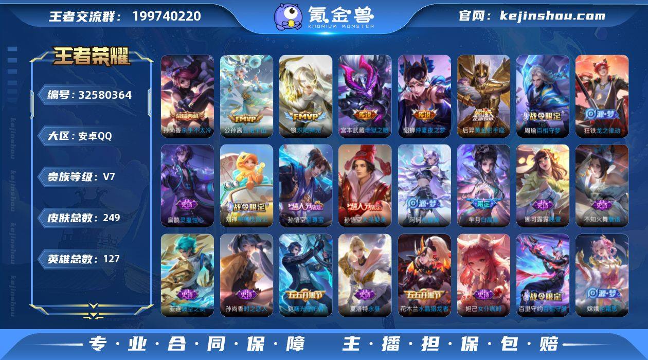 [17841223]V7 2典藏 1珍品传说 10传说 127英雄 249皮肤 可修改实名 女号 【英雄全皮】敖隐全皮,空空儿全皮,孙权全皮,蚩奼全皮,大禹全皮 【稀有英雄】敖隐(小龙人),大司命,韩信(韩跳跳),夏洛特(夏师傅),艾琳,橘右京(橘子),娜可露露(鸟人),不知火舞,赵云,金蝉(唐僧),戈娅 【荣耀水晶】颠倒童话·魔镜,杀手不太冷 【珍品传说】沧流箭 【传说皮】神骥·赴朔漠,罗刹妄海,神树通天,云诺千山,黄金射手座,仲夏夜之梦(大飞蛾),地狱之眼,炽阳神光 【珍宝阁皮】蔷薇恋人,女武神 【赛季/战令皮】噬灭天穹(s37),古海寻踪(s33),潮玩骑兵,玲珑珍味,流音漫舞,地狱燃心,剑破天穹(s35),天穹祈灯(s34),青焰无极,苍威无极,天穹之誓(s36),虞姬夏日便利店,暖冬·兔眠,银河之约,暗影游猎(游乐娃子),云间偶戏,星际陆战队-达摩,午后时光 【史诗皮】破空之剑,撼地雄心,星界战将,百相守梦-百里守约,茶境仙,蒙犽顽岩魄,蔬乡物语(鲁班七号),上官婉儿群星魔术团,化蝶舞,线条小狗-周瑜,九幽镇关,线条小狗-小乔,万灵启世,鸭鸭历险记-刘禅,傩神司,光弋星穹,涂山容容,百相守梦-周瑜,灵蛊蚀心,龙之律动,百相守梦-黄忠,遇见神鹿,紫霞仙子,特工魅影,永昼,江河有灵,百解令(蒙犽),高渐离燃音魔法,冰冠公主,偶像歌手,晚萤...