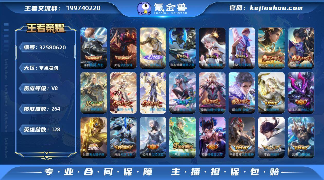 【938555】打野41段 发育路36段!苹果WX-V8-最强王者段位-128英雄-264皮肤-2典藏皮肤-1无双-21传说-86史诗 【英雄全皮】:孙权全皮,亚连全皮,敖隐全皮,司空震全皮,戈娅全皮,影全皮 【荣耀典藏】:李白鸣剑曳影,关羽赤影疾锋 【无双皮肤】:李白碎月剑心 【传说皮肤】:狄仁杰神骥赴朔漠,马超神骥逐星野,后羿神树通天,司空震愿照山河定,澜愿照九州拓,桑启鸣野蒿,亚连落雪白狼,宫本武藏惊梅引,公孙离记忆之芯,曜山海苍雷引,李信山海炽霜斩,吕布怒海麟威,李白诗剑行,马超无双飞将,镜炽阳神光,虞姬启明星使,刘备时之恋人,干将莫邪久胜战神,达摩黄金狮子座,貂蝉仲夏夜之梦,宫本武藏地狱之眼 【限定皮肤】:暃埋骨钱,蔡文姬夏日便利店,大乔绒语心约,虞姬夏日便利店,姜子牙天穹之誓,杨戬破阵退雄兵,狄仁杰阴阳师,赵云皇家上将,高渐离死亡摇滚,扁鹊奇幻香踪,元歌云间偶戏,元歌无心,马可波罗暗影游猎,马可波罗山海玄木吟,狄仁杰魔术师,项羽海滩派对,李元芳银河之约,李元芳匿光侦查者,李元芳云中旅人,虞姬启明星使,杨戬潮玩骑兵,雅典娜黎明之约,太乙真人华丽摇滚,黄忠烈魂,百里玄策原初追逐者,梦奇顽趣,裴擒虎李小龙,裴擒虎擒涛扼...