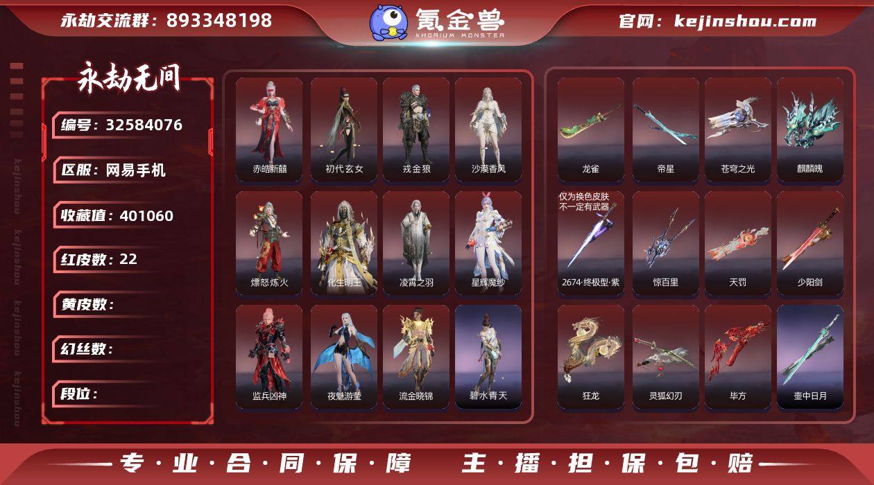 YJJ1999/4.21换绑/等级469/s19三人无双修罗/23红652金收藏值401060/赤皓新囍/初代玄女/星辉魔纱/化生明王/戎金狼/熛怒炼火/凌霄之羽/沙漠香风/监兵凶神/夜魅游莹/流金晓锦/麒麟魄/少阳剑/灵狐幻刃/帝星/龙雀/狂龙/龙骧/惊百里/天罚/苍穹之光/毕方/2674·终极型·紫/【技能奥义】/御祥云/勾玉/神君印/三娃葫芦/初代机/炎烈珠/珥冰/D.Va小兔徽章 宁红夜:/赤皓新囍/初代玄女/山川润/九阴圣女/蜘蛛精/碧水青天/泠川发/云霞发 沈妙:/星辉魔纱/腓腓/奥村春NOIR/涂鸦少女/秋藏桂/悠竹萌客/娇憨发/NOIR发型 天海:/化生明王/白熊/禅法/觉明尊者/警长制服/九骊之君/悟净 殷紫萍:/青玉案/萍之缘/福寿仙/鹅黄纱梦/天禄瑞光/风雨谐/瑶光沐月/伏苓发/降香发/暖绒发 特木尔:/戎金狼/唐三/友情岁月/追猎/苍狼之主/海神发 季沧海:/熛怒炼火/不良人李星云/康复之星/鹧鸪天/瑞火麟/游四海/江海沧澜/醉山川/江海发/白狼发/不如吾发 胡桃:/小可/紫藤神子/星空投影/御宅花织/阴阳姬/御宅罗梦/贵胄少女/洛天依光发/归宁发 妖刀姬:/暗夜利刃 崔三娘:/阿娜希塔/汐泪/敖丙/暗沼摩罗/文鳐/怒浪/蛰龙吟/鸢纱/赤雾烟霞/冷傲发 岳山:/杨戬/铁面/尼尔/煦阳漫叙/争斗洪流/弘毅袍/辉光/过江龙/玄鳞发 无尘:/凌霄之...
