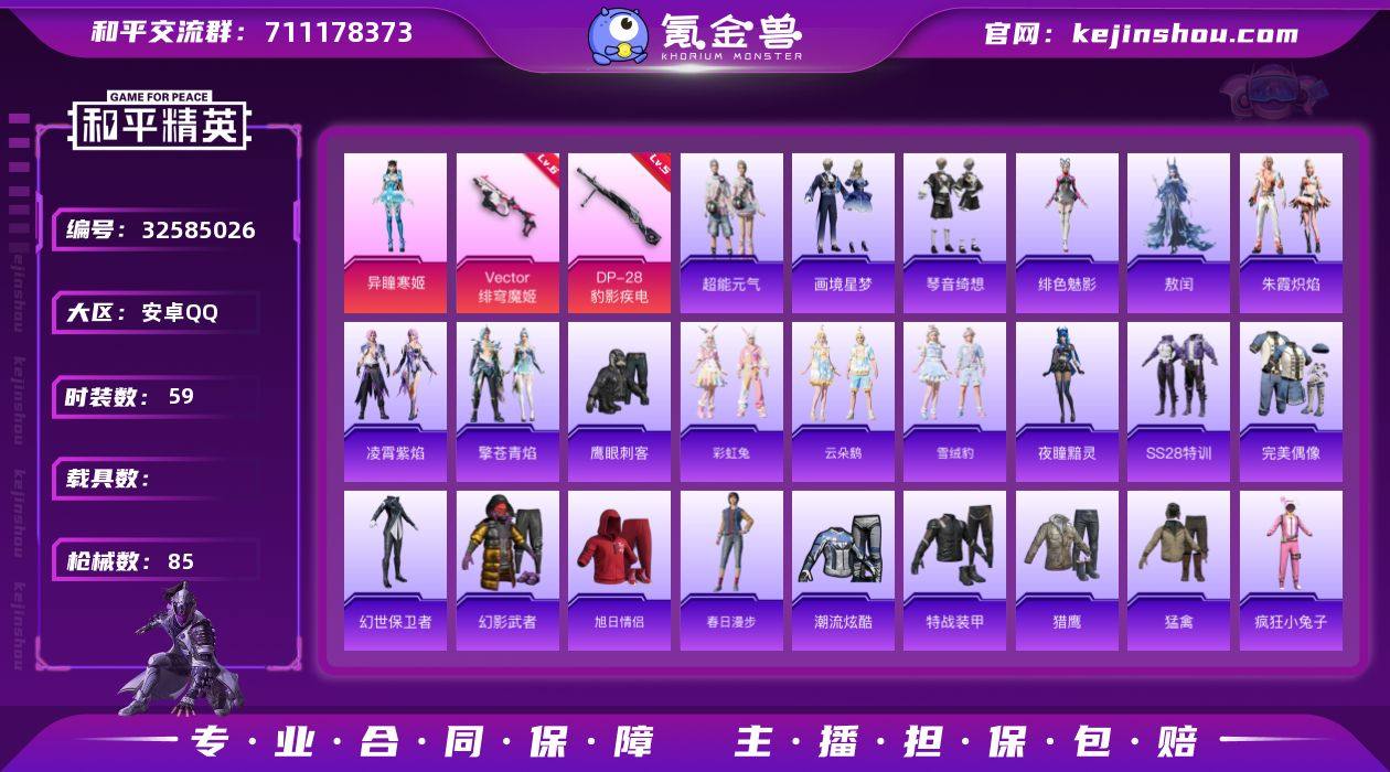 1粉装3特效枪22036热力值3王牌印记59套装 【粉色套装】:角色-异瞳寒姬 【粉色枪皮等级】:Vector-绯穹魔姬(六级),Mk14-福马献瑞(五级),DP-28-豹影疾电(五级) 【粉色枪皮】:Vector-绯穹魔姬,Mk14-福马献瑞,DP-28-豹影疾电 【粉色飞行器】:炫彩糖果飞行器 【粉色降落伞】:绝对恒星降落伞,冷漠罗丽降落伞,绯穹魔姬降落伞,无垠阁降落伞,极意拳锋降落伞,炫彩糖果降落伞 【稀有套装】:套装-超能元气,套装-雪国风尚,套装-炫彩糖果,角色-魂电,套装-彩虹兔,套装-云朵鹅,套装-雪绒豹,角色-夜瞳黯灵,套装-朱霞炽焰,套装-凌霄紫焰,套装-擎苍青焰,角色-敖闰,角色-绯色魅影,套装-画境星梦,套装-琴音绮想 【稀有枪皮】:AUG-冰晶雪宝,AKM-春暖花开,SCAR-L-炫彩节奏,GROZA-影袭,M762-天降萌叽,M762-云朵鹅,蜜獾-绯穹魔姬,ACE32-画境星梦,ARX-凌霄紫焰,UZI-啾咪啾咪,UZI-天降萌叽,UZI-影袭,UMP45-夜灯,UMP45-春暖花开,UMP45-生命誓言,MP5K-画境星梦,JS9-凌霄紫焰,Kar98K-影袭,M24-影袭,Mini14-春暖花开,Mini14-绯穹魔姬,SVD-云朵鹅,M1加兰德-画境星梦,S686-生命誓言,S12K-夜灯,AA12-G-画境星梦,SPAS-12-云朵鹅,M249-彩虹符号,M249-糯...