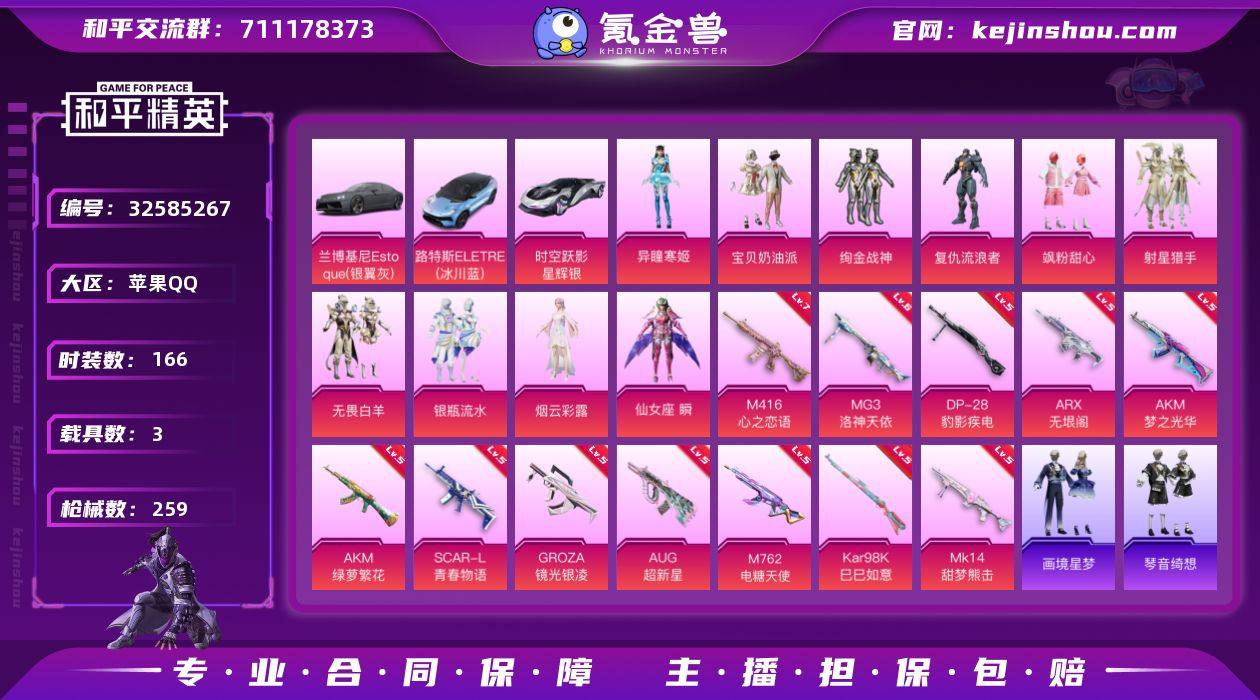 苹果【男神号 套装-暗影哥特,角色-Mark.06,M416-心之恋语(七级),AUG-超新星(五级),ARX-无垠阁(五级),兰博基尼Estoque(银翼灰),路特斯ELETRE(冰川蓝),百万伏特背包(1级)】 手Q-10粉装-12特效枪-3载具-1粉色飞行器-83158热力值-2王牌印记-166套装-259枪皮 【热门品类】:套装-龟仙人,套装-暗影哥特,角色-Mark.06 【粉色套装】:粉装-宝贝奶油派,粉装-绚金战神,角色-复仇流浪者,粉装-飒粉甜心,粉装-射星猎手,粉装-无畏白羊,粉装-银瓶流水,角色-烟云彩露,角色-仙女座 瞬,角色-异瞳寒姬 【粉色枪皮等级】:AKM-梦之光华(五级),AKM-绿萝繁花(五级),SCAR-L-青春物语(五级),M416-心之恋语(七级),GROZA-镜光银凌(五级),AUG-超新星(五级),M762-电糖天使(五级),ARX-无垠阁(五级),Kar98K-巳巳如意(五级),Mk14-甜梦熊击(五级),DP-28-豹影疾电(五级),MG3-洛神天依(六级) 【粉色载具】:兰博基尼Estoque(银翼灰),路特斯ELETRE(冰川蓝),时空跃影(星辉银) 【粉色枪皮】:AKM-梦之光华,AKM-绿萝繁花,SCAR-L-青春物语,M416-心之恋语,GROZA-镜光银凌,AUG-超新星,M762-电糖天使,ARX-无垠阁,Kar98K-巳巳如意,Mk14-甜梦熊击,DP-28-豹影疾电,MG3-...