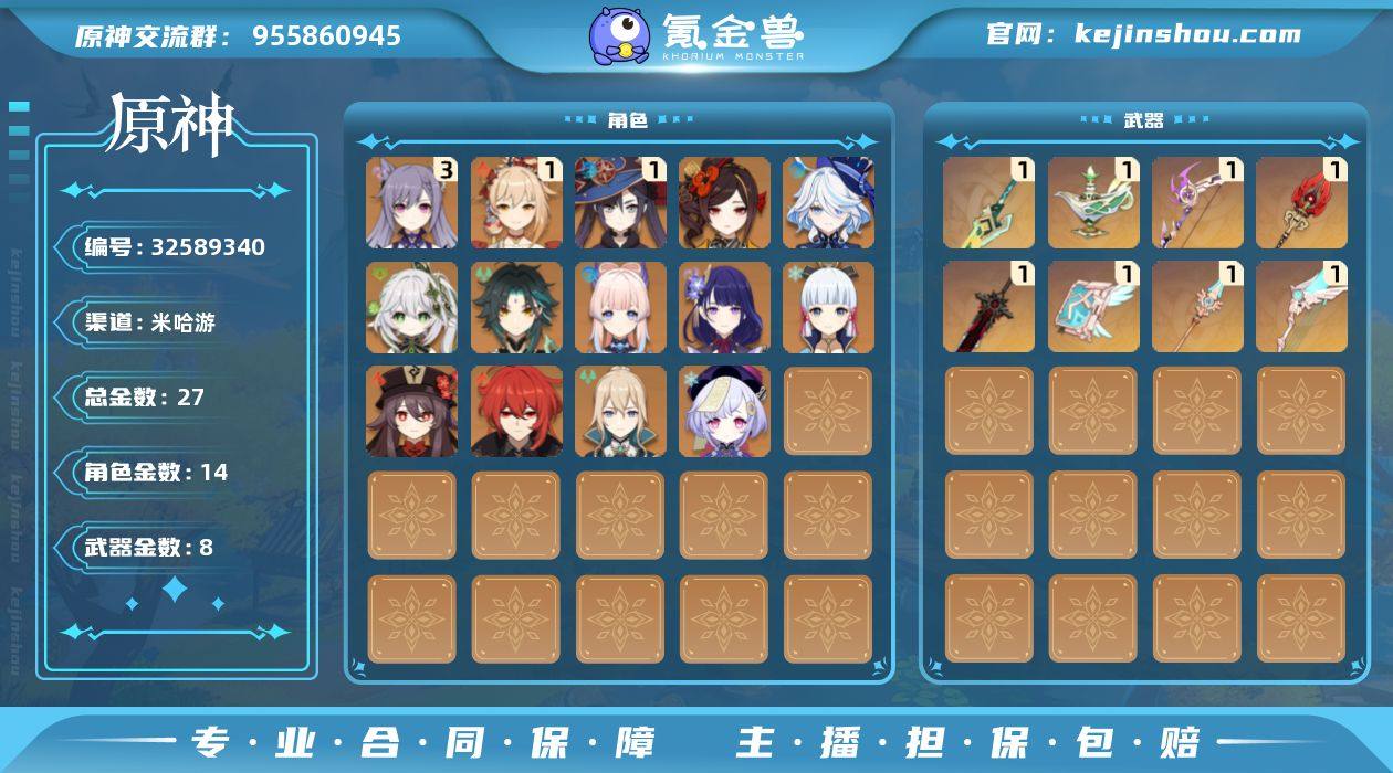 【YSN2479】58级/27黄/女主/14个五星角色/8个五星武器/芙宁娜/神里绫华/一命宵宫/魈/雷电将军/纳西妲/珊瑚宫心海/胡桃/三命刻晴/一命莫娜/千织/琴/七七/迪卢克/飞雷之弦振/天空之翼/千夜浮梦/天空之脊/护摩之杖/天空之卷/狼的末路/山王长牙