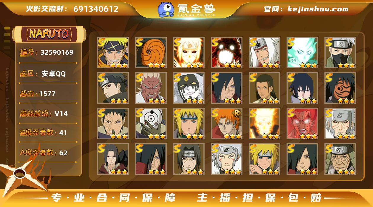 0B8UIT 号 VIP14,1577W战力,S忍43个,A忍68个,本服前500,战区未上榜,通灵兽22个,8时装,点券695,金币4789,高招券36,影级1阶,忍者星数740