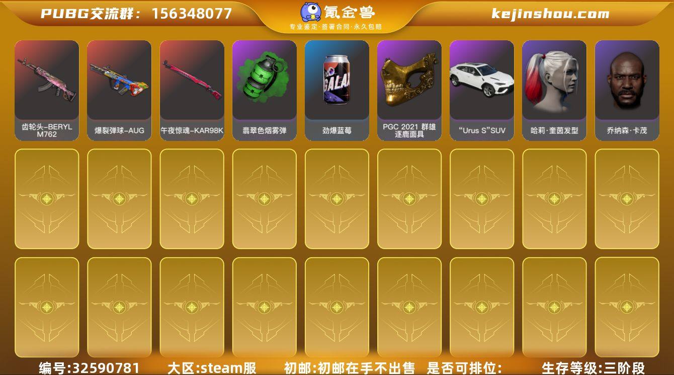 [WXZ1594]10级火麒麟 3级爆裂AUG 1级午夜惊魂98K 1级夜曲M24 1级时空使者M4 翡翠色烟雾弹 柏林鞋 小丑女 兰博基尼SUV 交易所接待室 武器神龛 黑鬼 金面 渔夫帽 红面巾 黑大衣 活动绿东 发光手臂 萨芬裤 粉战神 aespa女团 阿狸 拉风龙 小马尾 丸子头 青海摇 小兔学院 悲喜