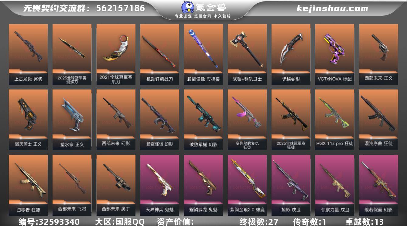 【PTWW3380】终极*27/传奇*1/卓越*13/皮肤*112/等级*230/段位:黄金/2025全球冠军赛/西部未来/耀鳞威龙套装/幻棱/炼狱/维斯/暮蝶/钛狐/壹决/铁臂/捷风/雷兹/幽影/不死鸟/贤者/猎枭/蝰蛇/零/芮娜/奇乐/尚勃勒/霓虹/斯凯/夜露/星礈/K/O/海神/盖可/黑梦/钢锁/2025全球冠军赛 蝴蝶刀/爪刀-2021全球冠军赛/近战武器-碎心裂刃/流风回雪/影钩/黑波之刃/威龙之刃/未来开拓者/超能偶像 应援棒/战锤-钢轨卫士/机动狂飙战刀/诡秘蛇影/2025全球冠军赛 狂徒/狂徒-归零者/狂徒-混沌序曲/狂徒-RGX 11z pro/多弥尔的复仇 狂徒/狂徒-盖亚的复仇/狂徒-海洋之星/狂徒-日冕雄师/狂徒-耀鳞威龙/狂徒-超能偶像/狂徒-钢轨卫士/狂徒-诡秘蛇影/幻影-黯夜怪谈/幻影-破败军械/幻影-西部未来/幻影-般若假面/幻影-侦察力量/幻影-掠影2.0/幻影-神圣领域/幻影-聚合之力/幻影-战术小伙伴/幻影-末日之翼/戍卫-掠影/戍卫-侦察力量/戍卫-超能偶像/戍卫-钢轨卫士/戍卫-月球哨兵/戍卫-折光棱晶/獠犬-神圣领域/獠犬-采蜜小蜂队/獠犬-战术小伙伴/冥驹-上古龙炎/冥驹-堕天遗武/飞将-西部未来/飞将-聚合之力/飞将-光导纤维/飞将-末日之翼/莽侠-诡秘蛇影/莽侠-月球哨兵/战神-神圣领域/战神-采蜜小蜂队/奥丁-西部未来/奥丁-...