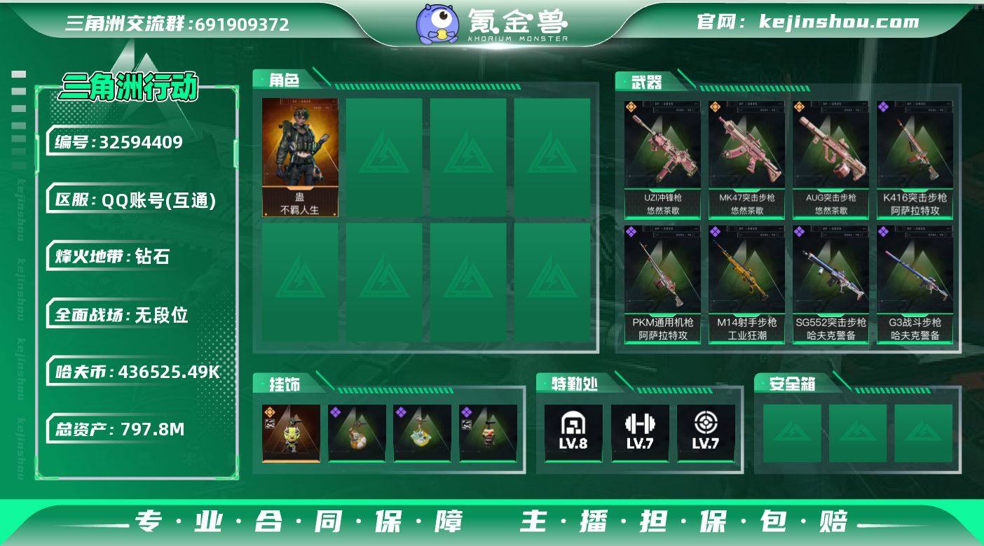 三角洲行动高爆率账号出售,可换绑可换身份信息,自玩账号纯绿色玩家,无封禁记录,可二次实名,现总资产797m,现金436m,3x3保险已做,账号爆率高,打了200多小时(一个非洲之星,两个炫彩威小龙,三个复苏呼吸机,四个奖杯,勇者之证已做),有205发awm子弹和多个藏品箱5级蛋,40高级咖啡豆,仓库有十一个六套,一仓库五甲修,收藏室基本上大红都有,多个传说枪皮,女医皮肤已肝,赛义德刀皮差一个阶段,威龙红皮差三发,体力和负重满级,仓库9级,诚心dd的宝宝来,可小刀