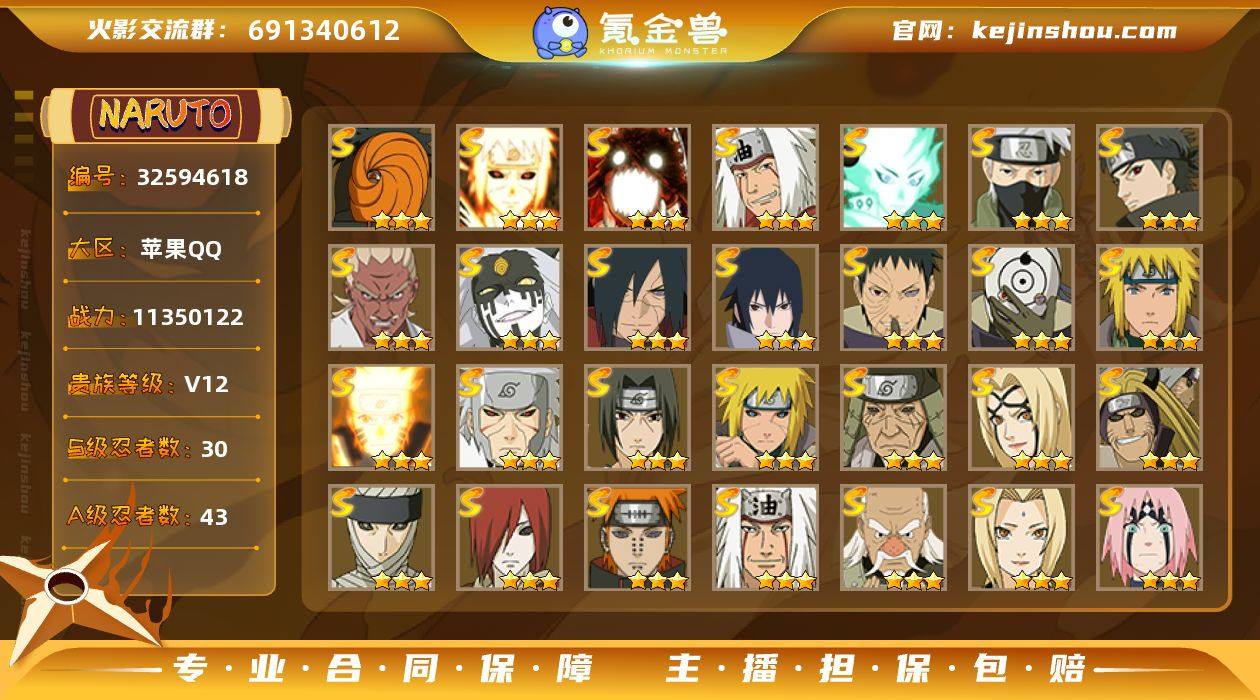 0BA197 号,VIP12,战力:11350122,S忍者数量:31,A忍者数量:55,本服排名:444,战区排名:未上榜,通灵兽数量:23,时装数:21,段位:暗部1阶,忍者星数:661