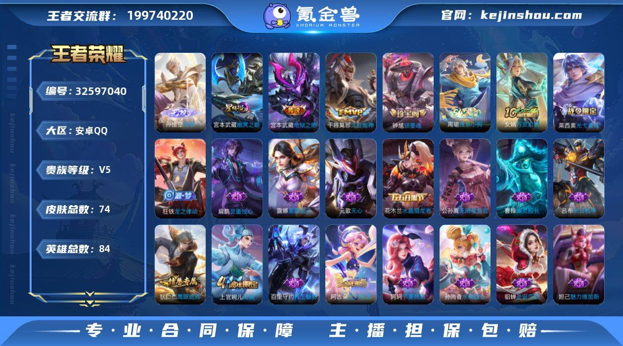 CHC11150,安卓Q-V5-最强王者段位-84英雄-74皮肤-1无双-2传说-20史诗 【英雄全皮】:孙权全皮 【无双皮肤】:孙悟空无相 【传说皮肤】:干将莫邪久胜战神,宫本武藏地狱之眼 【限定皮肤】:狄仁杰阴阳师,赵云皇家上将,元歌无心,狄仁杰万华元夜,达摩沙漠行僧,项羽海滩派对,兰陵王金庭之子,李元芳云中旅人,沈梦溪大漠名商,裴擒虎擒涛扼浪,上官婉儿梁祝,桑启海盐诗旅,阿古朵江河有灵,张良古海寻踪,鬼谷子天穹祈灯 【赛季限定】:狄仁杰万华元夜,达摩沙漠行僧,兰陵王金庭之子,沈梦溪大漠名商,李元芳云中旅人,桑启海盐诗旅,裴擒虎擒涛扼浪,张良古海寻踪,鬼谷子天穹祈灯 【战令限定】:莱西奥光弋星穹,明世隐往忆晖光,周瑜线条小狗 【史诗皮肤】:钟馗锁墨魂,周瑜线条小狗,女娲万灵启世,莱西奥光弋星穹,扁鹊灵蛊蚀心,狂铁龙之律动,阿古朵江河有灵,元歌无心,上官婉儿梁祝,公孙离无限星赏官,狄仁杰鹰眼统帅,阿轲节奏热浪,百里守约特工魅影,花木兰水晶猎龙者,吕布末日机甲,曹操幽灵船长,妲己魅力维加斯,孙尚香水果甜心,貂蝉圣诞恋歌,赵云皇家上将,露娜紫霞仙子 【其他皮肤】:吕布舞狮寰,鲁班七号班班快跑,妲己线条小狗,蒙恬苍云破阵,...