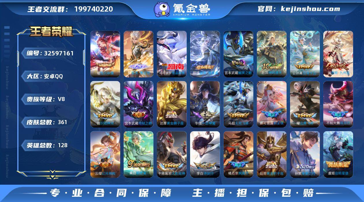 AHC41023,,1.02w曜-打野40段-1星元-1天幕-21按键-qq安全提醒,,,,安卓Q-V8-最强王者段位-128英雄-361皮肤-1典藏皮肤-1无双-2珍品传说-19传说-104史诗 【英雄全皮】:刘禅全皮,孙权全皮,橘右京全皮,金蝉全皮,空空儿全皮 【荣耀典藏】:瑶拾光映像 【无双皮肤】:曜器灵螭龙剑 【珍品传说】:嫦娥器灵落星盏,马可波罗怪盗基德 【传说皮肤】:后羿神树通天,公孙离云诺千山,澜愿照九州拓,云缨幻光神枪,桑启鸣野蒿,李白诗剑行,不知火舞绯月行,橘右京枫霜尽,娜可露露前尘镜,马超无双飞将,孙策挚爱之约,镜炽阳神光,虞姬启明星使,曜云鹰飞将,李信一念神魔,干将莫邪久胜战神,达摩黄金狮子座,后羿黄金射手座,宫本武藏地狱之眼 【限定皮肤】:暃埋骨钱,蒙犽顽岩魄,姜子牙天穹之誓,杨戬破阵退雄兵,狄仁杰阴阳师,赵云皇家上将,赵云百木心枪,嬴政优雅恋人,鲁班七号狮舞东方,庄周高山流水,高渐离死亡摇滚,钟无艳超时空战士,白起夜都怪侠,芈月幻夜卜梦,元歌无心,夏侯惇匿光决锋者,甄姬落雪兰心,马可波罗山海玄木吟,狄仁杰魔术师,狄仁杰万华元夜,达摩沙漠行僧,项羽海滩派对,老夫子醍醐杖,程咬金演武夺筹,露娜一生所爱,韩信傲雪梅枪,王昭...