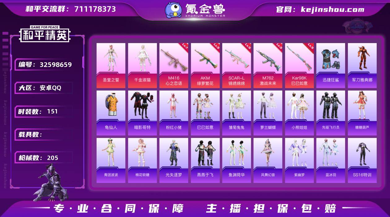 安卓 手Q-2粉装-8特效枪-0载具-5粉色飞行器-61278热力值-11王牌印记-151套装-205枪皮 【热门品类】:角色-军刀雅典娜,套装-龟仙人,套装-暗影哥特,套装-粉红小猪 【粉色套装】:角色-圣堂之誓,角色-千金淑猫 【粉色枪皮等级】:AKM-绿萝繁花(五级),SCAR-L-锦绣绵绵(五级),M416-心之恋语(七级),M762-激战未来(五级),ACE32-萌骑漫游(五级),AKS-74U-森灵之息(五级),Kar98K-巳巳如意(五级),Mk14-福马献瑞(二级) 【粉色枪皮】:AKM-绿萝繁花,SCAR-L-锦绣绵绵,M416-心之恋语,M762-激战未来,ACE32-萌骑漫游,AKS-74U-森灵之息,Kar98K-巳巳如意,Mk14-福马献瑞 【粉色飞行器】:齐天大圣飞行器,天之羽翼飞行器,星夜魔法师飞行翼,夜幕颂歌飞行器,星空武士飞行器 【粉色降落伞】:至尊龙雀降落伞,梦幻火箭降落伞,花间之火降落伞,环太平洋降落伞,垂柳戏鸭降落伞,第五大道降落伞,闲梦青缨降落伞,莲影清波降落伞,江南烟雨降落伞,精灵梦叶罗丽降落伞,英伦信使降落伞,未来领航者降落伞,月影灵韵降落伞 【稀有套装】:套装-龟仙人,套装-巳巳如意,套装-马上来财,套装-迅捷龙虾,套装-雏菊兔兔,套装-萝兰蝴蝶,套装-小熊娃娃,套装-先驱飞行员,套装-糖糖葫...