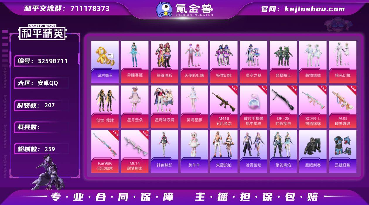 h10753少萝号 12粉8特 星空之魅 猪脸 萌物绒绒 荧海星豚 糯粉咩咩 金鞋 红熊茄茄 满级五爪金龙 安卓 手Q-12粉装-8特效枪-0载具-3粉色飞行器-83924热力值-14王牌印记-207套装-259枪皮 【热门品类】:粉装-缤纷油彩,套装-浪漫天命,套装-派对舞王,套装-小丑鱼,套装-龟仙人,套装-糯粉咩咩,套装-红熊茄茄 【粉色套装】:粉装-天使彩虹糖,粉装-缤纷油彩,粉装-极致幻想,粉装-星空之魅,粉装-翡翠骑士,粉装-萌物绒绒,粉装-镜光幻境,套装-创世·救赎,粉装-星月云朵,粉装-星穹咏叹调,角色-荧海星豚,角色-异瞳寒姬 【粉色枪皮等级】:SCAR-L-锦绣绵绵(五级),M416-五爪金龙(七级),AUG-暖羊咩咩(五级),Kar98K-巳巳如意(五级),Mk14-甜梦熊击(五级),Mk14-福马献瑞(一级),DP-28-豹影疾电(五级),破片手榴弹-瓶中星球(七级) 【粉色枪皮】:SCAR-L-锦绣绵绵,M416-五爪金龙,AUG-暖羊咩咩,Kar98K-巳巳如意,Mk14-甜梦熊击,Mk14-福马献瑞,DP-28-豹影疾电,破片手榴弹-瓶中星球 【粉色飞行器】:镜光幻境飞行翼,幻梦之森飞行器,戏水时光飞行器 【粉色降落伞】:甜心宝贝降落伞,甜蜜誓约降落伞,锦绣火鲤降落伞,绮梦青鸾降落伞,暗夜玫瑰降落伞,海渊国主降落伞,天之...