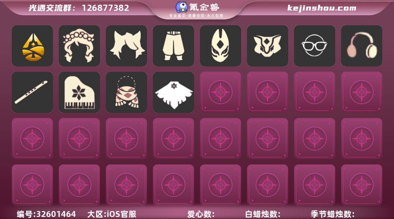 账号类型: 手机账号 季节已毕业: 归巢季 完成地图: 霞谷 裤子: 武士裤 面具: 黄鼠狼,红狐狸 面饰: 红耳机,黑框眼镜 项链: 围巾 发型: 猫耳 头饰: 花环 斗篷: 白鸟斗 配饰: 高音钢琴,笛子 亮点: 重塑药水16