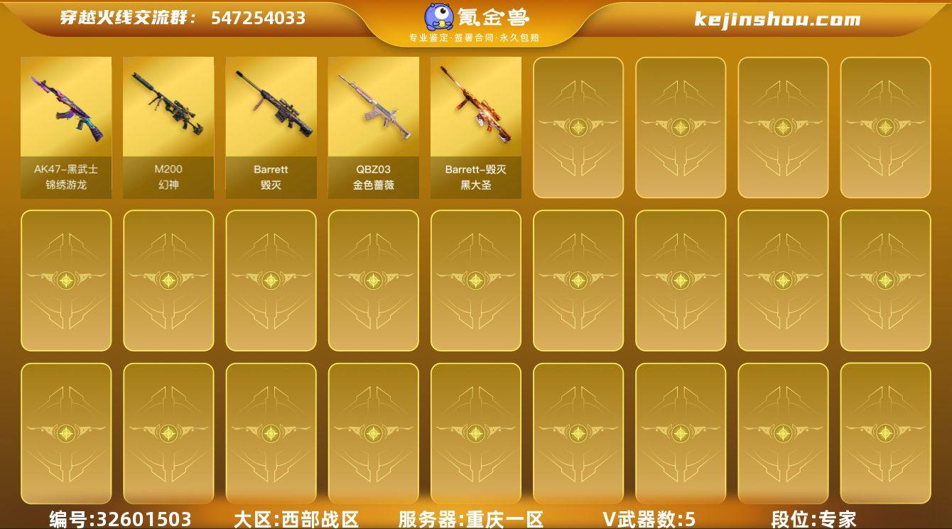 【ky6407】重庆一区-6V-0王者武器数-0炫金武器数 【热门武器】:QBZ03-金色蔷薇,M200-幻神 【皮肤】:毁灭-黑大圣皮肤,毁灭-英雄计划 皮肤 【角色】:暗夜-X,初恋灵狐,风暴女,娟娟,潘多拉-X,蜀雪,兔囡囡,雪莉杨 【挑战大师】:AK47-冰龙粉碎者,激光毁灭者III-白马银枪*2 【英雄级武器】:黑武士-锦绣游龙,QBZ03-金色蔷薇,Barrett-毁灭,M200-幻神 【源级武器】:源·火麒麟*2,源-黑龙,源·雷神*3,魂·M4A1-雷神-化蛇*2,魂·雷神-诺拉,魂·雷神-神秘按键,M4A1-十二生肖·龙-雷神,魂·黑骑士-现代金属*2,魂·黑骑士-幻能朋克*3,魂·黑骑士-破浪10年*2,御·黑骑士·哪吒闹海*2,源·无影,魂-死神-机甲核心,魂·黑武士-锋芒破茧,源·天启,御·超新星-圣诞,源·武圣,源-金色蔷薇,魂·9A91·烈火-电子连击,源-极光,源·天龙,魂·天龙-彼岸花,魂·裁决-凤灵,魂·裁决-新人王绿豆,魂·裁决-羽掣,源·毁灭*2,魂·毁灭-秦师*2,魂·毁灭-青帝,御·毁灭-黑大圣*2,魂·Barrett-金色蔷薇-蛇姬,源·Barrett-朱雀,灵·Barrett-朱雀-炫光*2,魂·炼狱-电子连击*2,魂·炼狱-玩具枪*2,魂·修罗-神兵利器,魂·修罗-迷彩,源·天神,魂·屠龙-春桃,魂·屠龙-惊鸿,魂·擎天-蒸汽钟表,魂·龙...