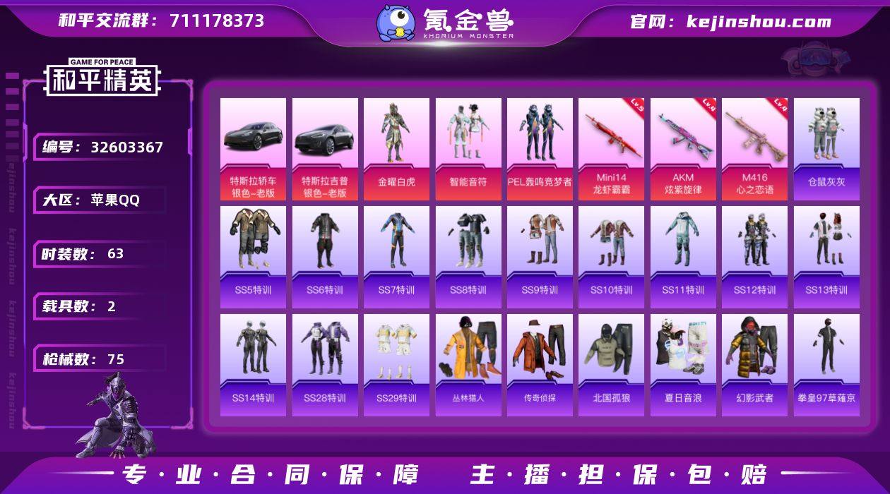 YXc28159-【可二次】【因赛季更新游戏段付以上号为准!】 苹果Q-2载具3粉装3特效枪11热门63套装75枪皮 3印记 历史超级王牌3星 【2载具】 特斯拉3银色 特斯拉X银色 【3粉装】 金曜白虎 智能音符 PEL轰鸣竞梦者 【3特效枪】 M416-心之恋语 (4级) AKM-炫紫旋律 (4级) Mini14-龙虾霸霸 (5级) 【11热门】 仓鼠灰灰 雪山精英 粉甜马卡龙 海洋之心 风华少年志 白月香洋装 软嫩糖心蛋 黑色刀锋 极速红龙 M416-仓鼠灰灰 Kar98K-深海曼妙 【1飞行器】 炫紫旋律飞行器 【1头盔】 金曜白虎头盔 【3背包】 金风玉露背包 深海曼妙背包 马卡龙背包