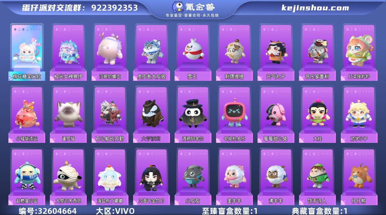 1彩31紫棉花糖芙米拉古风小生汪伦冷面千金竹月劝学小子大亨波利元气丸子 历史潮流:6.3万 段位:三阶鸡蛋 等级:69 性别:女 幻彩套装数量:1 紫色套装数量:31 幻彩套装:棉花糖芙米拉 紫色套装:古风小生汪伦 冷面千金竹月 劝学小子 大亨波利 元气丸子 小浮冰 仓鼠米仔 虎皮卷大灰狼 海盐布丁嘟嘟 超燃蛋小蓝 大祭司木西恩 大娃 电视机多乐 渡鸦阿舍尔 沉眠的螺壶 石心船长苏勒 莓莓甜心兔 打菜侠妙妙 音乐家蕾利 暹罗猫 小福袋添运 极光女神典伊 沸羊羊 美羊羊 小灰灰 刺猬绷绷 雪王 失心熊 仔仔熊 饶舌诗人 背饰:日月相食 玩具:2周年蛋糕 随行召唤器 鱼篓 "