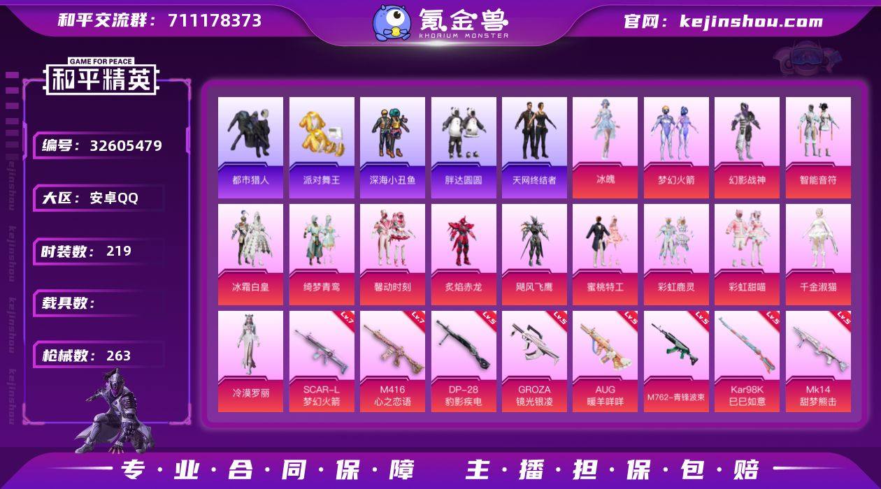 YZJ16063 可二次 安卓Q-4稀有14粉装9特效枪20热门219套装263枪皮 81791热力值 极品身法素材号 地铁满天赋 新火箭少女 千金淑猫 彩虹甜喵 幻影战神 智能音符 冰魄 馨动时刻 蜜桃特工 彩虹鹿灵 都市 金鞋 天网 胖达圆圆 浪漫波比 深海小丑鱼 红眼罩 晶辉眼罩 猫包 嘟嘟伙伴 满级M4心之恋语 满级斯嘎梦幻 满级AUG暖羊 14印记 历史卓越王牌11星 【4稀有】 都市猎人 派对舞王 天网终结者 派对舞王(金靴子) 【14粉装】 冰魄 梦幻火箭 千金淑猫 冷漠罗丽 幻影战神 智能音符 冰霜白皇 绮梦青鸾 馨动时刻 炙焰赤龙 飓风飞鹰 彩虹甜喵 蜜桃特工 彩虹鹿灵 【9特效枪】 SCAR-L-梦幻火箭 (7级) M416-心之恋语 (7级) Kar98K-巳巳如意 (5级) M762-青锋波束 (5级) DP-28-豹影疾电 (5级) AUG-暖羊咩咩 (5级) Mk14-甜梦熊击 (5级) GROZA-镜光银凌 (5级) Mk14-福马献瑞 (1级) 【20热门】 Mark.06 龟仙人 雪山精英 晶辉守护 鹰眼刺客 深海小丑鱼 浪漫波比 胖达圆圆 梦起落英 暗影哥特 团圆交子 瑞龙福将 粉红小猪 漫步者 破蛋小黄鸡 黑色刀锋 弄潮海豚 M762-瑞龙福将 MK47-林间仙鹿 汤姆逊-林间仙鹿 【1飞行器】 绮梦青鸾飞行器 【3头盔】 梦幻火箭头盔 百万伏特头盔 深海小丑鱼头盔 【5背包】...