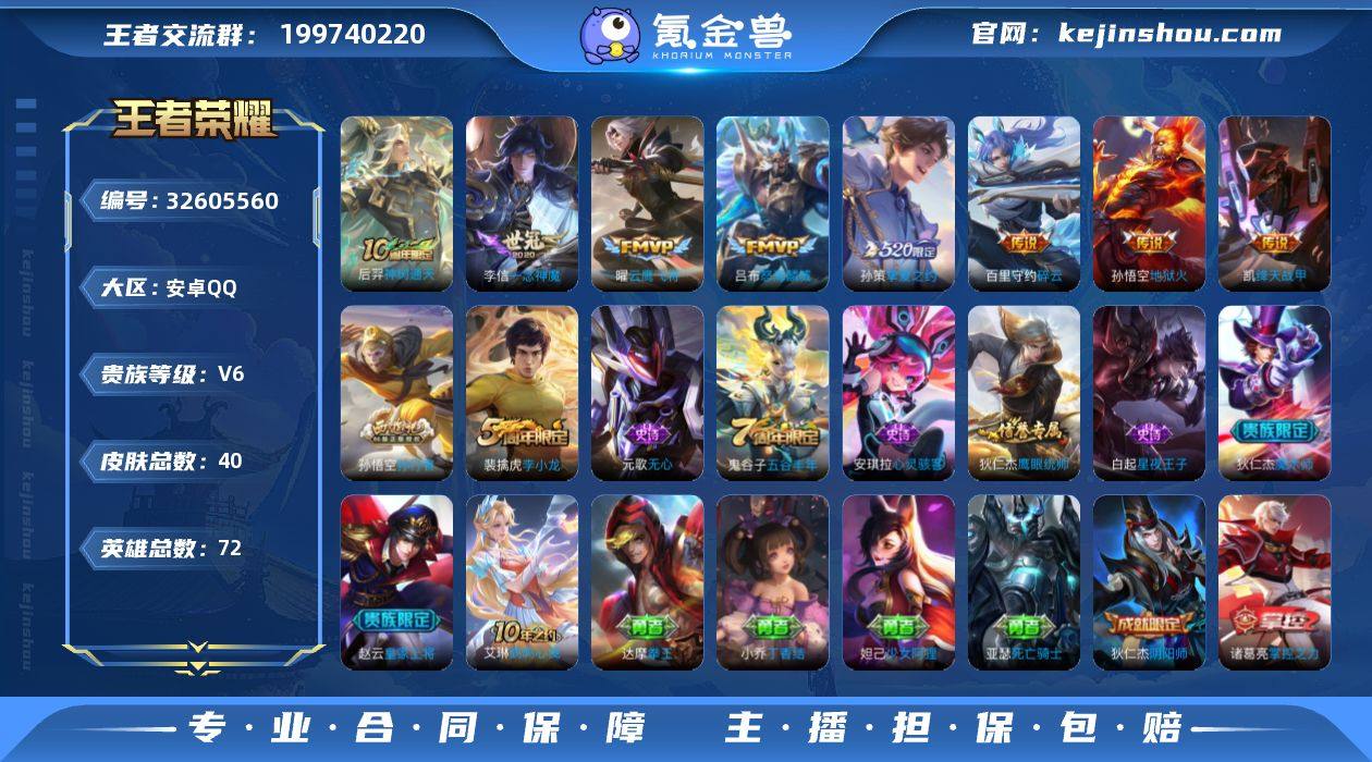 【王者荣耀】珍品无双0 典藏0 无双0 珍品传说0 传说8 史诗9 英雄76 皮肤40 贵族6级 传说皮肤:挚爱之约|绛天战甲|地狱火|一念神魔|云鹰飞将|怒海麟威|碎云|神树通天__稀有限定:孙行者|李小龙|海滩派对|海盐诗旅|皇家上将|混沌棋|魔术师|驱傩正仪|万华元夜|无心|五谷丰年|演武夺筹|阴阳师|御銮|星夜王子|鹰眼统帅|心灵骇客|原初探秘者|云中旅人|鹤鸣心笺__优质皮肤:森|绝影神枪|隐刃|精灵王|剑舞者|丁香结|死亡骑士|少女阿狸|幻泉雾影|拳王|缤纷绘卷|掌控之力__贵族等级:贵族6级__王者段位:白银【可二次】捡漏皮肤小号 怒海麟威,云鹰飞将,碎云,挚爱之约,一念神魔,绛天战甲,孙行者