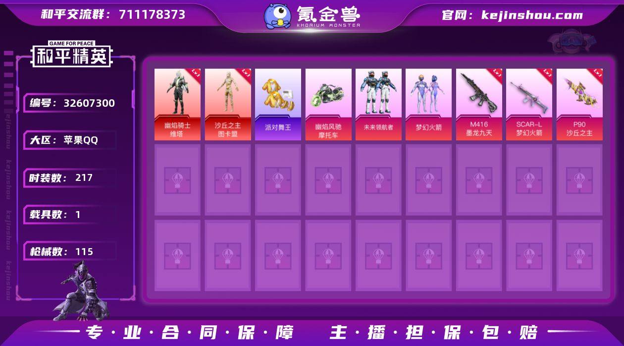 【稀有枪皮】AUG-暖羊咩咩,AKM-幽焰骑士,GROZA-镜光银凌,M416墨龙九天,Kar98K-巳巳如意,14-福马献瑞,AKS-74U-森灵之息,SCAR-L梦幻火箭,P90沙丘之主