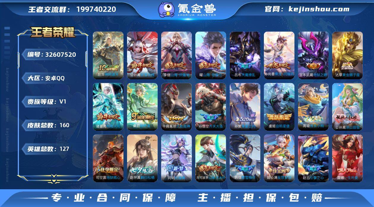 安卓Q-V0-永恒钻石III段位-127英雄-160皮肤-14传说-50史诗 一颗未兑换的荣耀水晶 【传说皮肤】:后羿神树通天,桑启鸣野蒿,孙尚香乘龙问璇玑,孙悟空齐天大圣,曜山海苍雷引,李信山海炽霜斩,孙策挚爱之约,公孙离祈雪灵祝,诸葛亮时雨天司,虞姬启明星使,干将莫邪久胜战神,达摩黄金狮子座,宫本武藏地狱之眼,吕布天魔缭乱 【限定皮肤】:蒙犽顽岩魄,姜子牙天穹之誓,狄仁杰阴阳师,赵云皇家上将,赵云引擎之心,吕布天魔缭乱,元歌无心,马可波罗山海玄木吟,狄仁杰魔术师,狄仁杰万华元夜,达摩沙漠行僧,项羽海滩派对,程咬金演武夺筹,露娜一生所爱,韩信傲雪梅枪,王昭君午后时光,兰陵王金庭之子,孙悟空齐天大圣,李元芳云中旅人,虞姬启明星使,钟馗驱傩正仪,干将莫邪胡桃夹子,鬼谷子原初探秘者,鬼谷子五谷丰年,诸葛亮时雨天司,苏烈千军破阵,梦奇顽趣,公孙离祈雪灵祝,沈梦溪大漠名商,裴擒虎擒涛扼浪,狂铁电玩高手,云中君纤云弄巧,李信山海炽霜斩,孙策挚爱之约,嫦娥拒霜思,嫦娥暖冬兔眠,曜山海苍雷引,鲁班大师探海日志,桑启海盐诗旅,暃星界游侠,艾琳流音漫舞,赵怀真鹤归松栖,司空震地狱燃心,阿古朵江河有灵,张良古海寻踪,蒙犽百解令,...