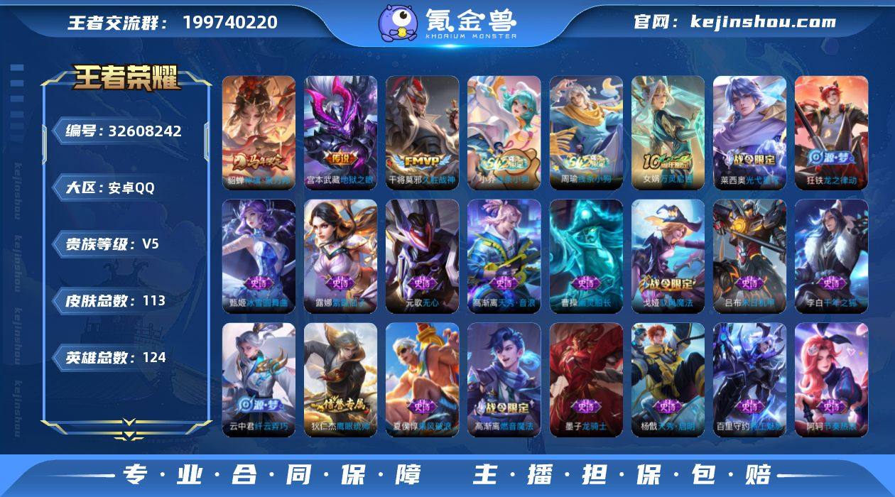 安卓Q-V5-最强王者段位-124英雄-113皮肤-3传说-32史诗HZ263228 【英雄全皮】:孙权全皮 【传说皮肤】:貂蝉神骥聚万邦,干将莫邪久胜战神,宫本武藏地狱之眼 【限定皮肤】:姜子牙天穹之誓,狄仁杰阴阳师,赵云皇家上将,高渐离玩趣恶龙,元歌无心,项羽海滩派对,沈梦溪大漠名商,云中君纤云弄巧,西施玲珑珍味,鲁班大师探海日志,桑启海盐诗旅,戈娅驭风魔法,张良古海寻踪,蒙犽百解令,高渐离燃音魔法,妲己灵卜魔法,鬼谷子天穹祈灯,周瑜熔金海岸 【赛季限定】:沈梦溪大漠名商,桑启海盐诗旅,鲁班大师探海日志,张良古海寻踪,鬼谷子天穹祈灯,姜子牙天穹之誓,亚瑟荣光之誓 【战令限定】:戈娅驭风魔法,西施玲珑珍味,高渐离燃音魔法,妲己灵卜魔法,莱西奥光弋星穹,明世隐往忆晖光,周瑜线条小狗,小乔线条小狗 【史诗皮肤】:周瑜线条小狗,小乔线条小狗,女娲万灵启世,莱西奥光弋星穹,狂铁龙之律动,高渐离燃音魔法,妲己灵卜魔法,蒙犽百解令,戈娅驭风魔法,元歌无心,高渐离天秀音浪,哪吒雪上飞焰,杨戬天秀启明,云中君纤云弄巧,狄仁杰鹰眼统帅,大乔猫狗日记,孙策猫狗日记,阿轲节奏热浪,蔡文姬舞动绿茵,百里守约特工魅影,兰陵王暗隐猎兽者,夏侯...