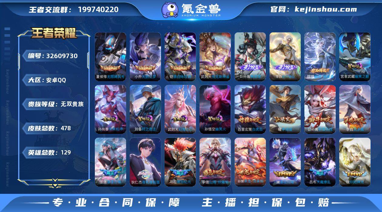 【店长推荐·无双V10·7.3W流光积分·神骥仙使主页·满马年限定·5典藏·3无双·2珍品·5星传说·69传说·37个按键·阿轲罗刹妄海·韩信踏浪归·可二次】w20993-安卓Q-129英雄-478皮肤-22王者印记-300铭文-贵族积分26w【贵族11】【5典藏·3无双·2珍品·5星传说·69传说·1天幕·37按键·59个性戳戳】【因赛季更新游戏段付以上号为准!】 【英雄全皮】:阿轲全皮,孙权全皮,太乙真人全皮,鬼谷子全皮,李信全皮,敖隐全皮,金蝉全皮,戈娅全皮,空空儿全皮,海诺全皮,少司缘全皮 【荣耀典藏】:武则天英雄,武则天倪克斯神谕,夏侯惇无限飓风号,小乔天鹅之梦,铠银白咏叹调 【无双皮肤】:李信问心剑,公孙离离恨烟,李白碎月剑心 【珍品传说】:伽罗沧流箭,嫦娥器灵落星盏 【星元皮肤】:刘备时之思念,孙尚香未来机甲,武则天幻海之心,孙悟空幽冥火,宫本武藏幽冥之眼 【天幕】:墨染江湖天幕 【传说皮肤】:阿轲罗刹妄海,韩信踏浪归,云缨神骥越千峰,关羽神骥镇沧海,朵莉亚神骥鸣幻洲,狄仁杰神骥赴朔漠,貂蝉神骥聚万邦,马超神骥逐星野,李元芳星君娄金,花木兰异界灵契,后羿神树通天,铠冥王哈迪斯,亚连落雪白狼,吕布曦玄引,典韦战鼓燎原,孙策乘龙淬吴钩,赵云乘龙铭钟鼎,马超...