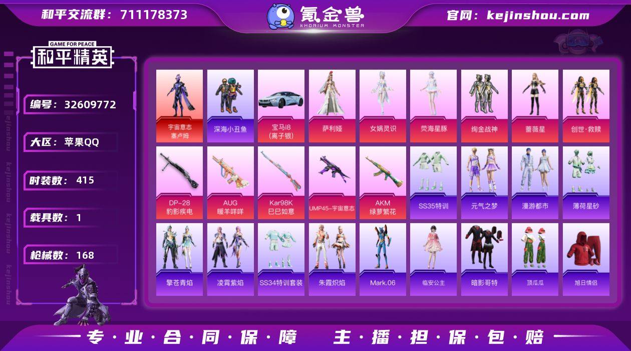 DB2768 苹果Q区 可改实名可转区 1红 6粉 5特 1载具 126扭蛋碎片 48地铁天赋点(63级卓越收藏家) 4级塞卢姆 女娲灵识 蓝螳螂 迅捷狂鲨 深海小丑鱼 暗影哥特 3级P90宇宙意志 宝马i8 苹果手Q-10王牌印记-1红装-6粉装-5特效枪-1载具-54436热力值-114套装-168枪皮-4卓越印记-1传奇印记 【1红装】宇宙意志-塞卢姆/4级 【6粉装】角色-女娲灵识,角色-荧海星豚,套装-创世·救赎,套装-绚金战神,角色-蔷薇星,角色-萨利娅 【5特效枪】AKM-绿萝繁花/5级,DP-28-豹影疾电/5级,AUG-暖羊咩咩/5级,UMP45-宇宙意志/3级,Kar98K-巳巳如意/5级 【1红装】宇宙意志-塞卢姆/4级 【5稀有紫装】Mark.06,暗影哥特,深海小丑鱼,迅捷狂鲨,临安公主 【1稀有载具】宝马i8(离子银) 【114稀有时装】绚金战神,塞卢姆/4级,荧海星豚,SS35特训,SS31特训,SS33特训,SS32特训,彩虹兔,蓝冰羽,霓虹热舞,雪绒豹,双彩圣灵,恋语绒绒,SS34特训,朱霞炽焰,紫幽梦,大橘大利,夜瞳黯灵,绛羽幽主,Mark.06,临安公主,暗影哥特,深海小丑鱼,迅捷狂鲨,凌霄紫焰,擎苍青焰,元气之梦,瑰梦爱神,漫游都市,薄荷星砂,粉恋花,云朵鹅,顶瓜瓜,新风雅兰,蔷薇星,女娲灵识,萨利娅,创世·救赎,龙魂突击队,小熊娃娃,异域银装,纯白跃动,都市丽猫,街头风暴,...