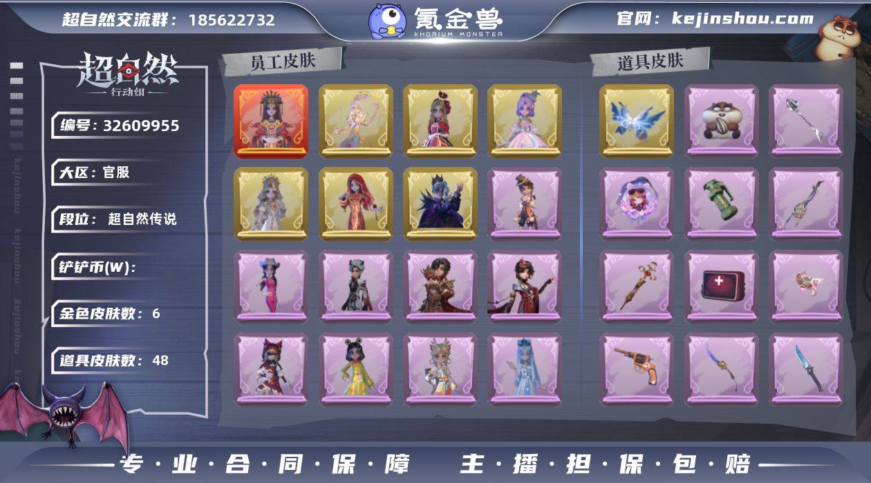 超自然行动组官服 氪5000成品号 售价1200 官服可换绑,资料齐全,安全放心!总充值5000元,配置拉满:红皮1个|金皮6个|紫皮18个|道具皮肤48个丨铲铲币1300.7W丨金色动作20个|紫色动作8个丨头饰20个|挂饰9个|背饰9个|美妆1个,养成度高,上手即玩,可小刀